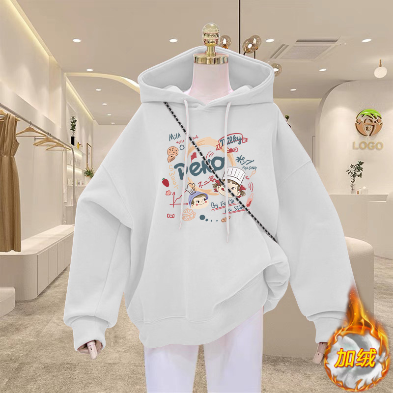 Главная страница > Новый плюшевый толстый свитер с капюшоном женский осень-зима 2024 новый свободный большой размер модной куртки пара толстовки прилив