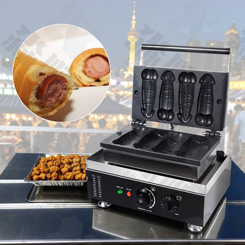 Вафельница с четырьмя электрическими нагревательными пластинами, электрическая сковорода для тайваньской уличной еды, коммерческое использование за рубежом.