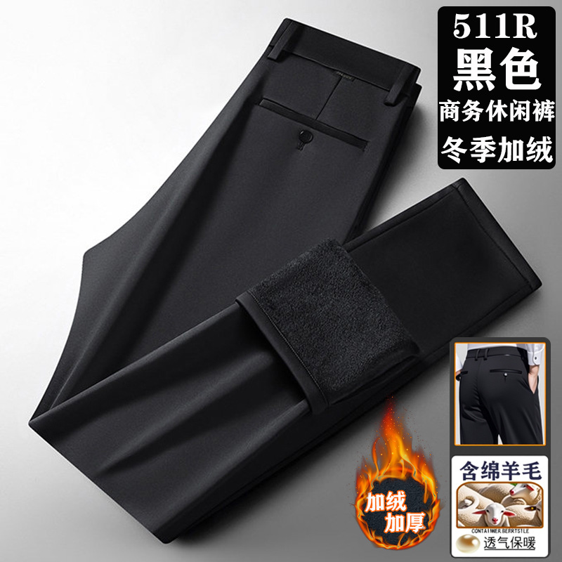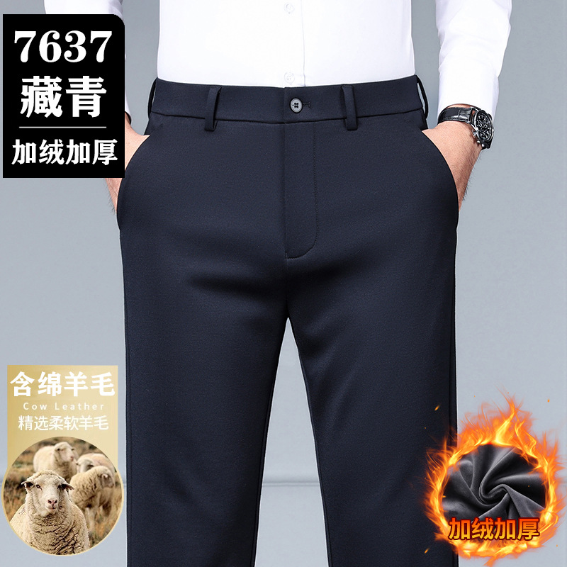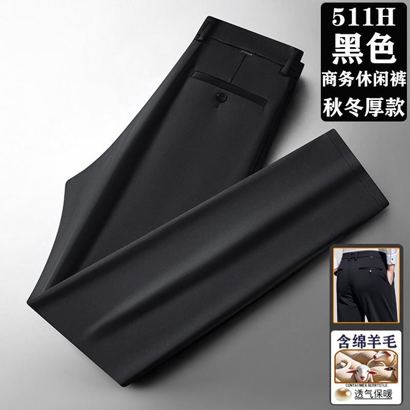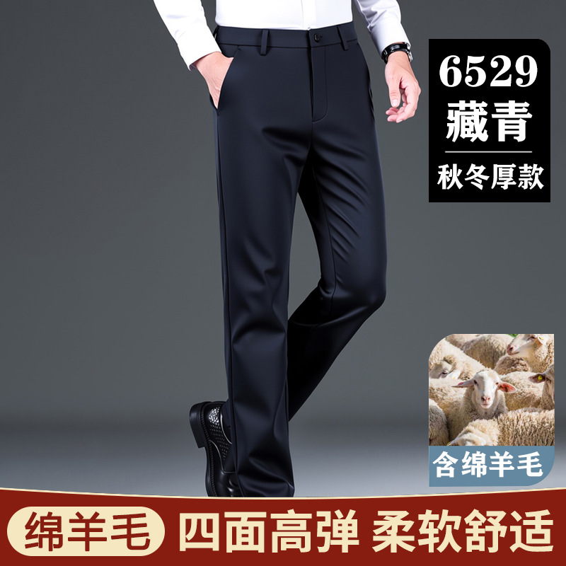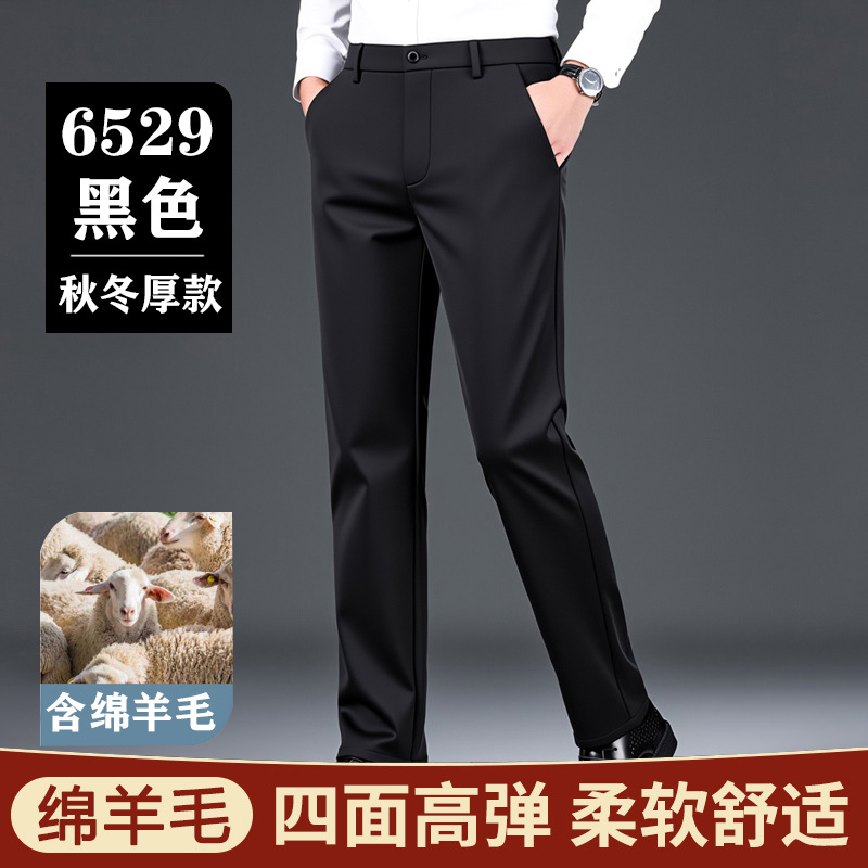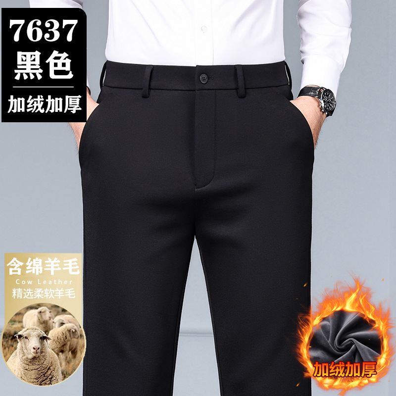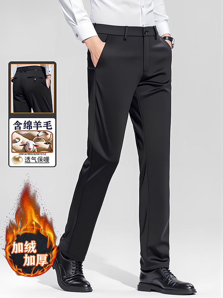 Мужские шерстяные брюки для делового стиля, осенне-зимние, утепленные, немнущиеся, прямые, универсальные, эластичные, в деловом стиле.