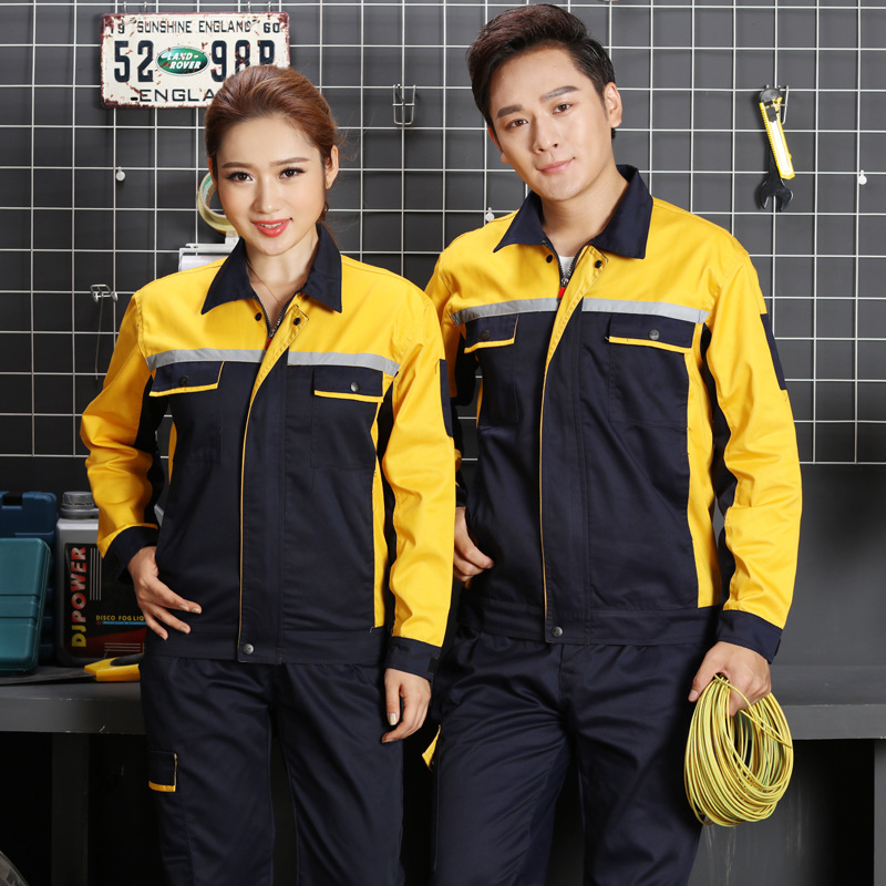 Рабочая одежда полиэстер весенне-осенняя с длинными рукавами четвертого поколения темно-синего и желтого цвета