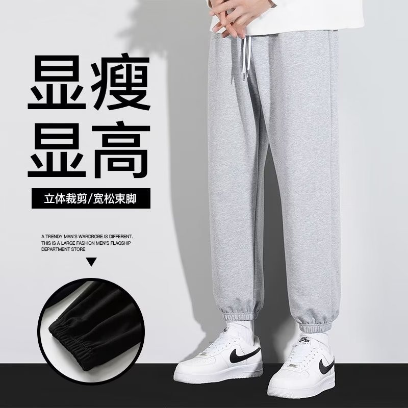 Спортивные повседневные брюки, мужские свободные спортивные штаны, модные брендовые брюки с завязками на щиколотке, Осенние тонкие однотонные, универсальная цельная доставка
