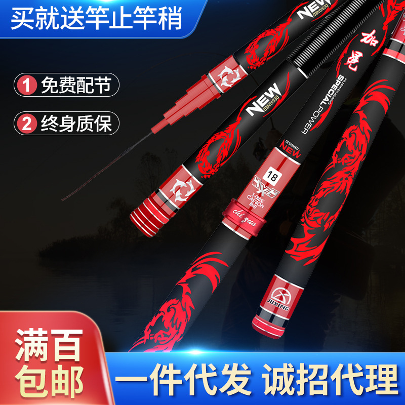 Удочка из углеродного волокна, 19 секций, 6H, легкая, жесткая, черная, для платформенной рыбалки, полный комплект рыболовных снастей