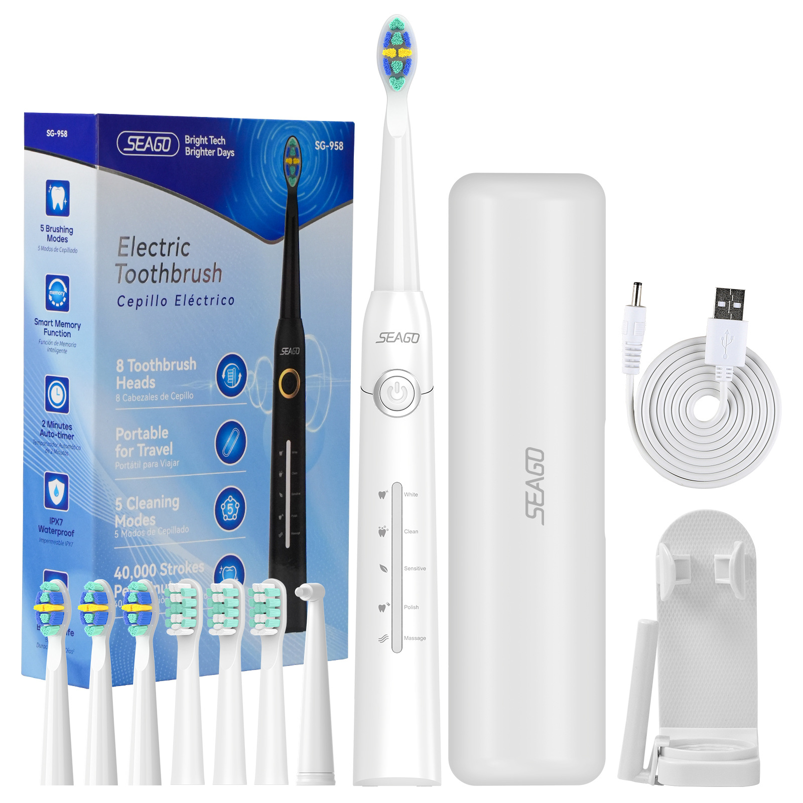 958 Английский Белый [Основная ручка*1 + Насадка-щетка*8 + Зарядный кабель*1] Бесплатный портативный кейс*1