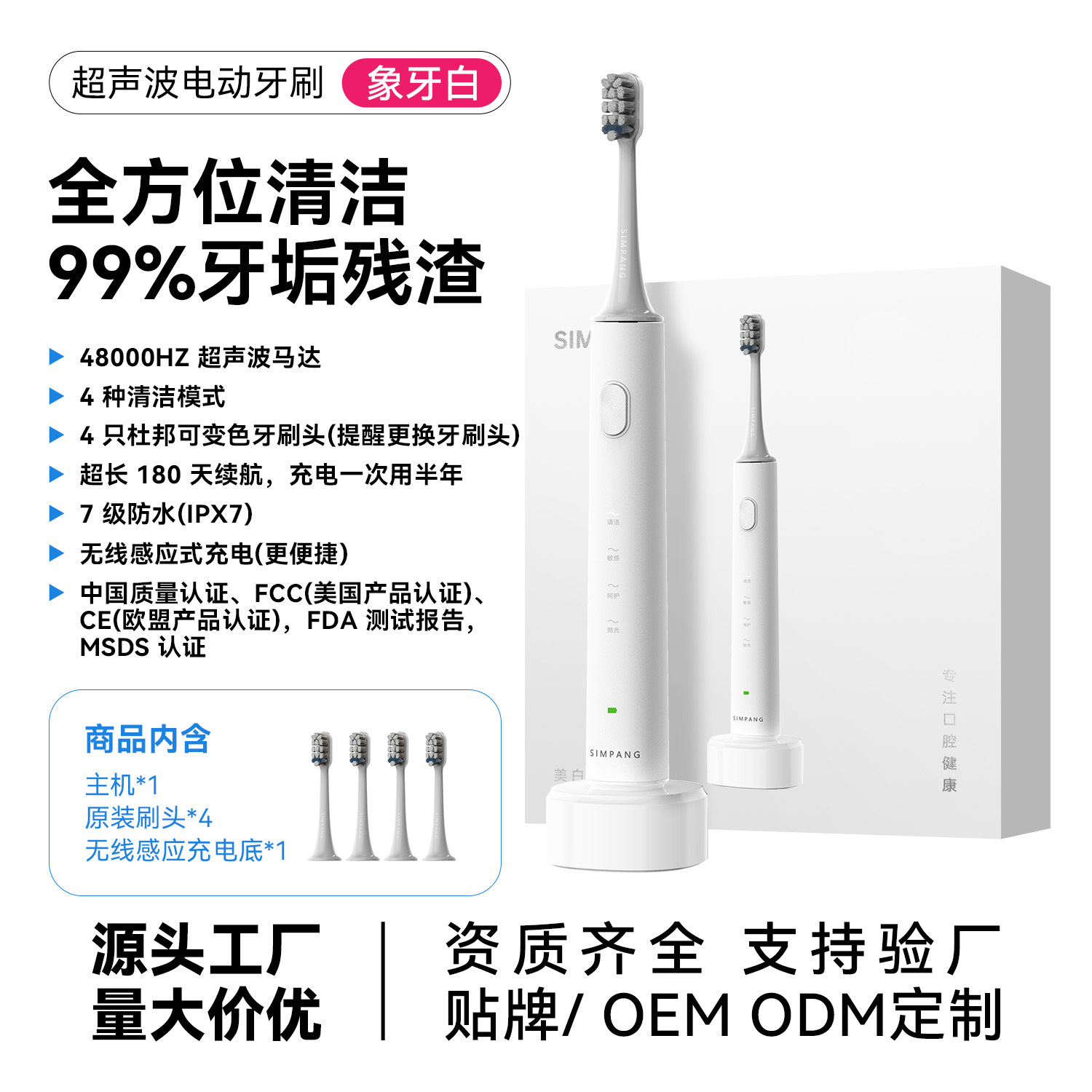 Белый цвет слоновой кости, индукционная беспроводная зарядка, подарочная коробка с 4 насадками для щеток