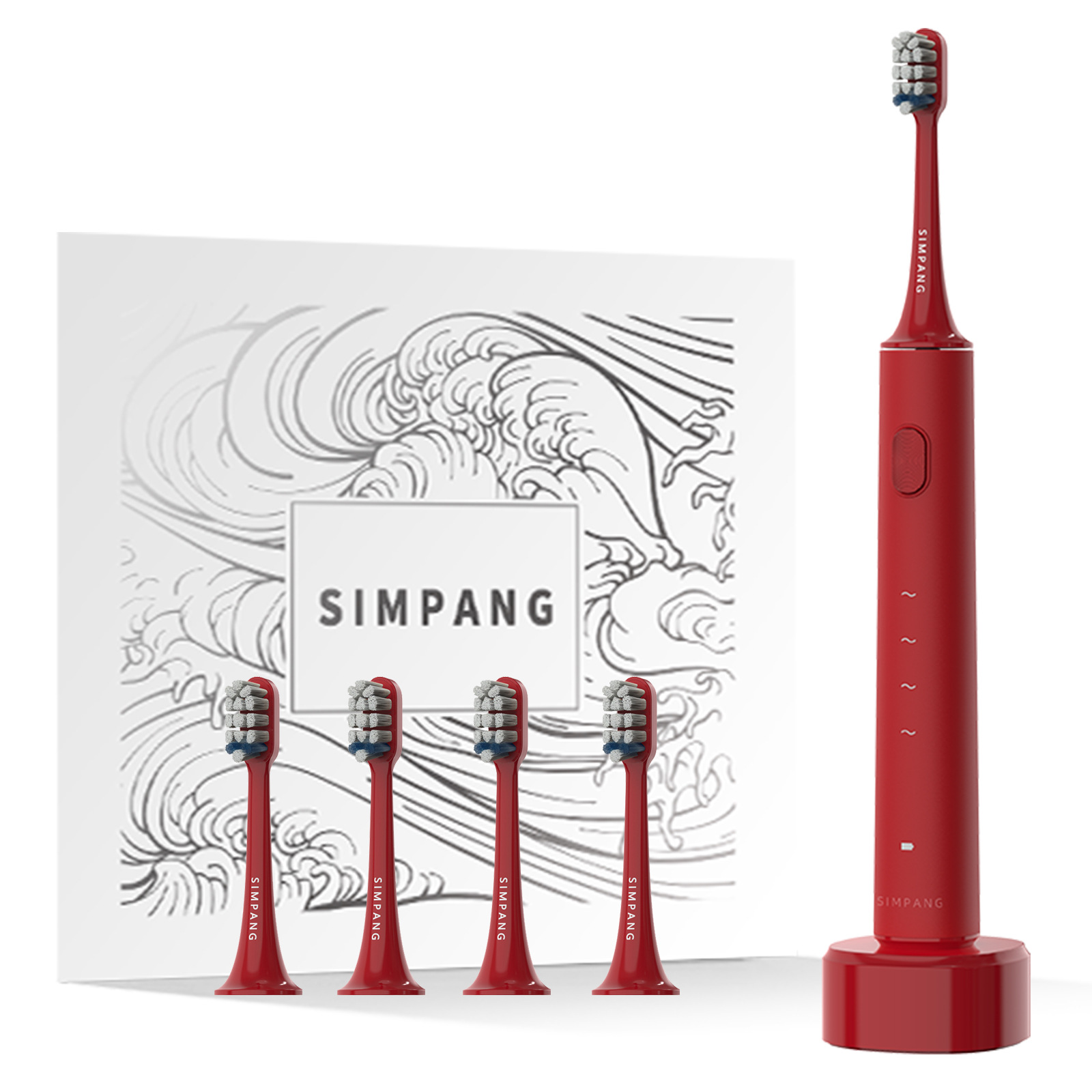 Карминово-красная индукционная беспроводная зарядка — подарочная коробка с 4 насадками для щеток