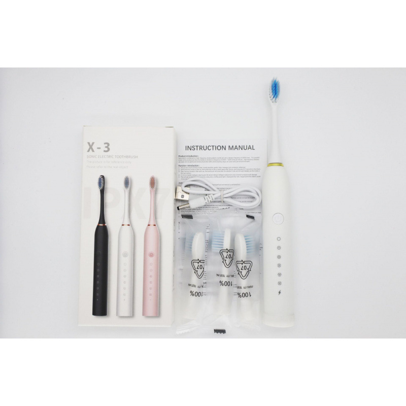 Белая зубная щетка + 4 насадки + дорожная коробка + подставка