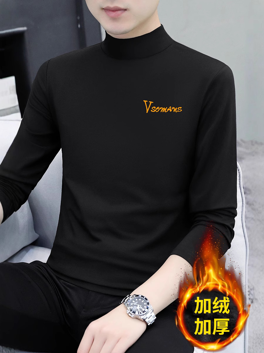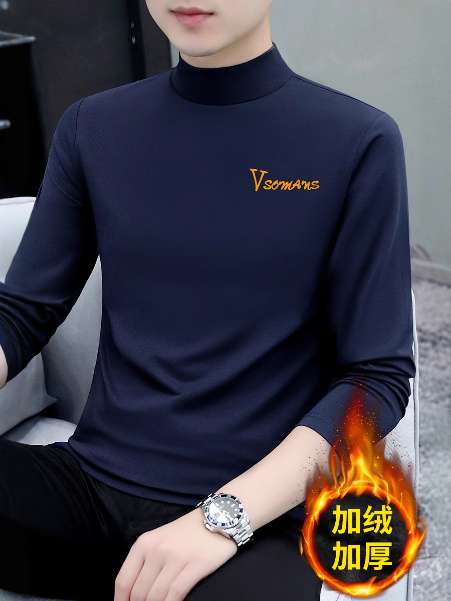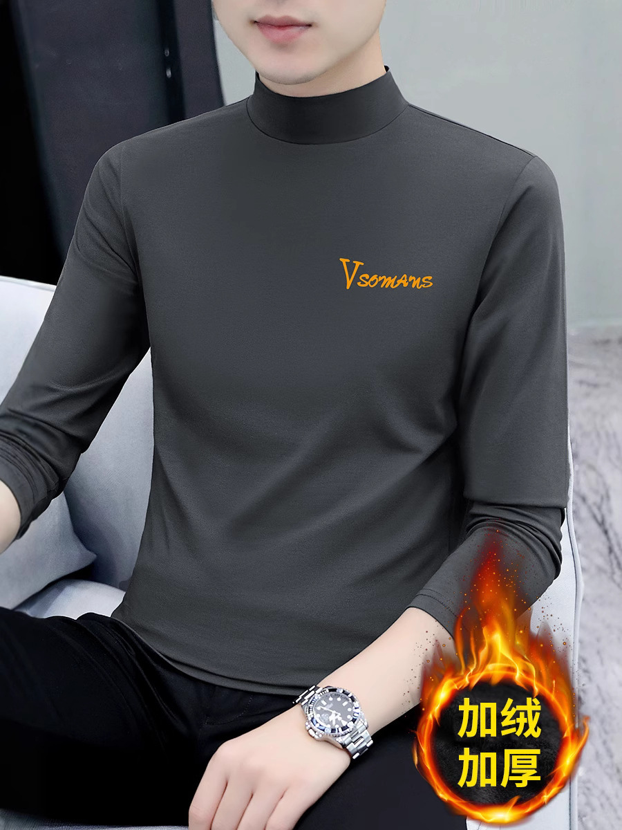 Главная страница > Осенне-зимняя утепленная мужская футболка с длинными рукавами на флисовой подкладке, модная внутренняя одежда с воротником до локтя, Мужская теплая Базовая рубашка, осенняя одежда