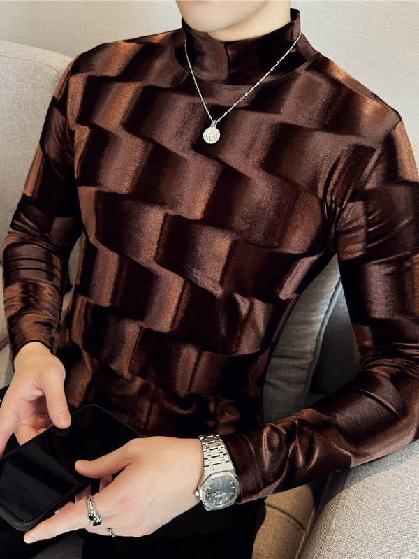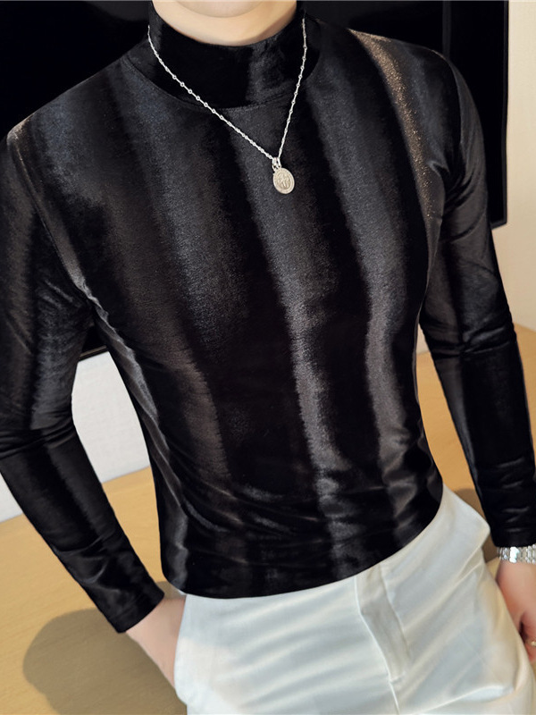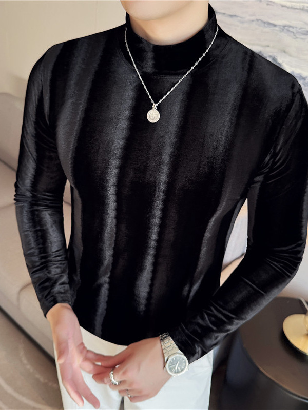 Главная страница > Shouyin волоса мальчик золотая бархатная футболка модная полувысокий воротник в складчатый дизайн среднего воротника нижняя рубашка мужская футболка
