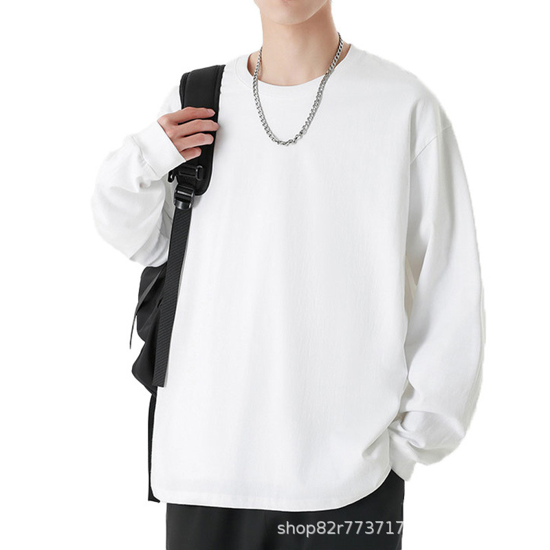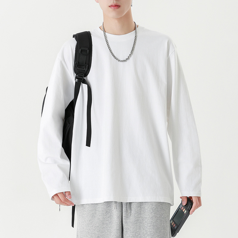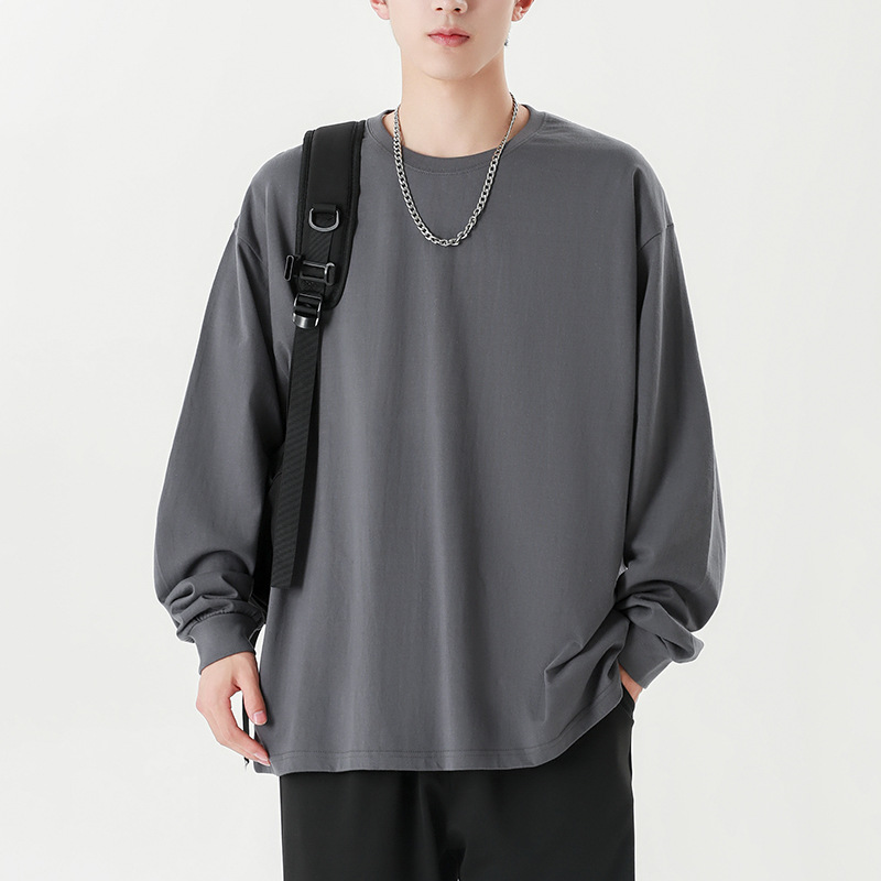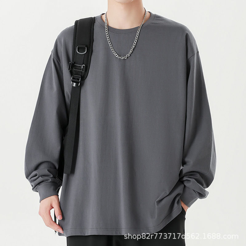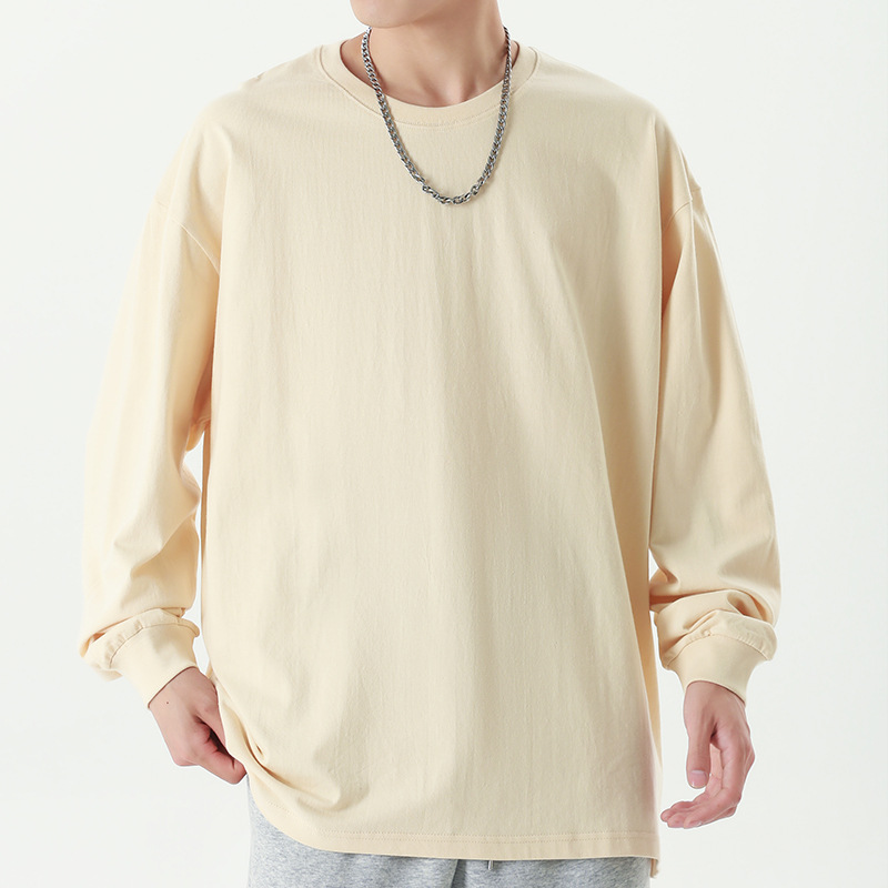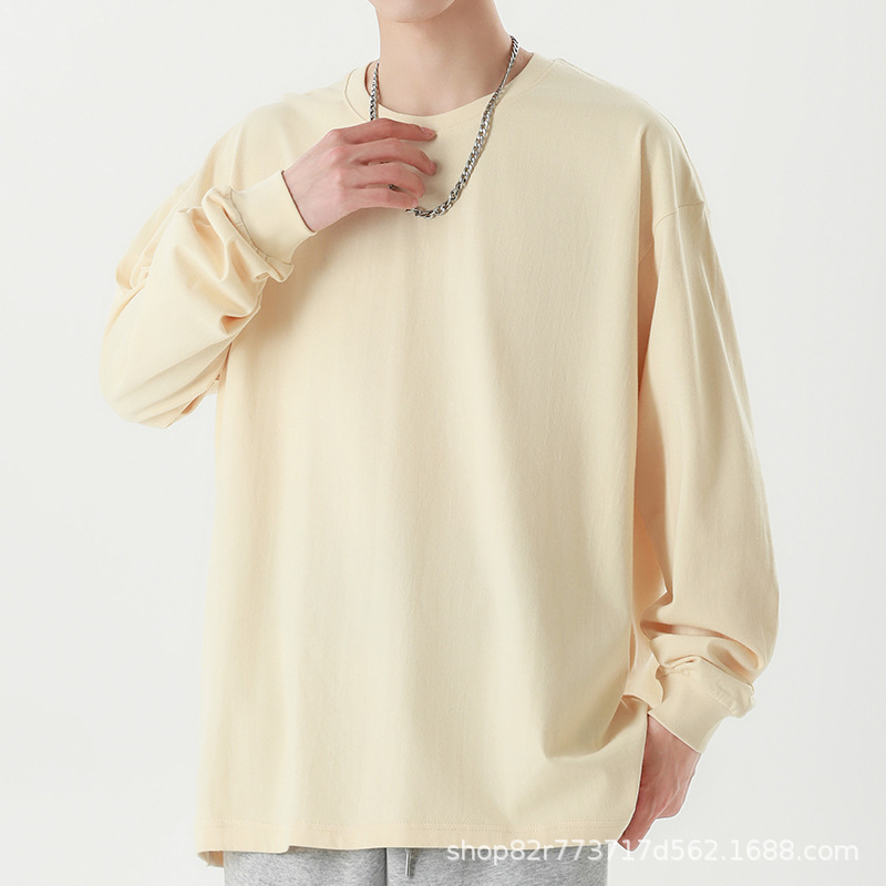 Главная страница > Футболка с длинными рукавами из плотной хлопковой нити 260 г, Мужская модная брендовая Однотонная футболка в гонконгском стиле 2024, осенне-зимняя свободная футболка