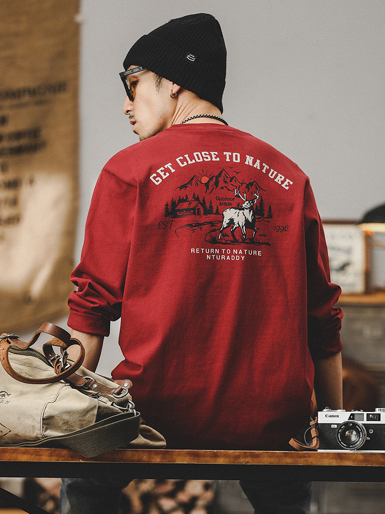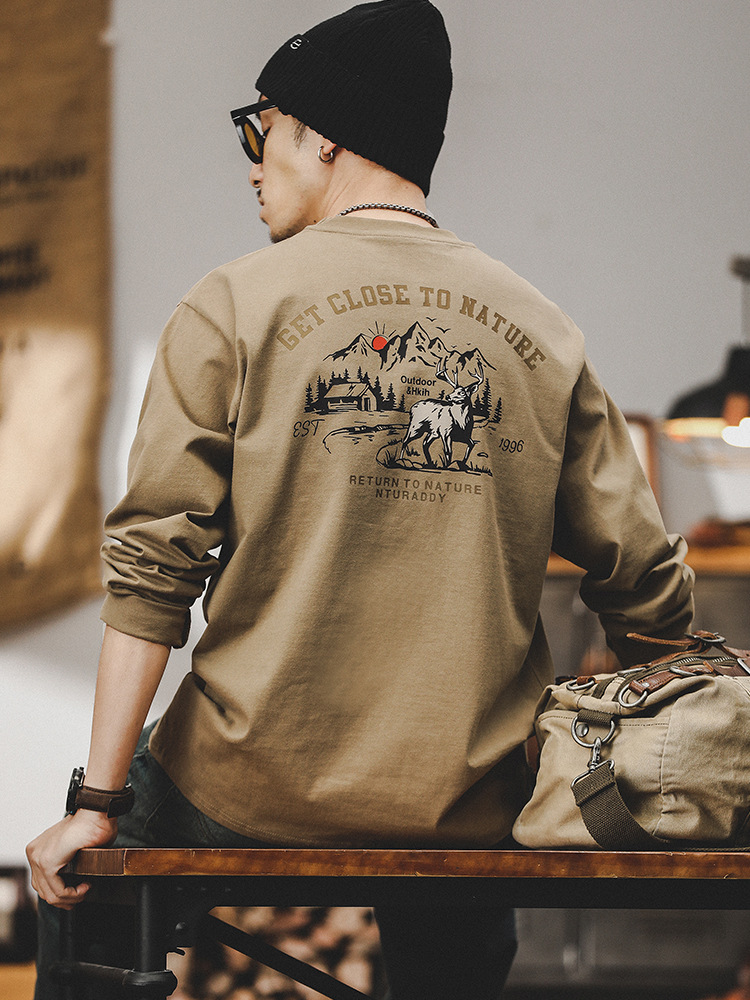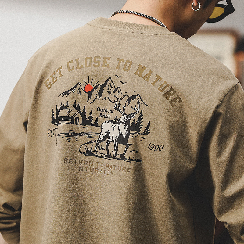 Главная страница > Мужская футболка в американском стиле, тяжелая, с длинным рукавом, новинка осени 2025, модный брендовый топ, мужская одежда с принтом в горном стиле, трендовая мужская футболка.