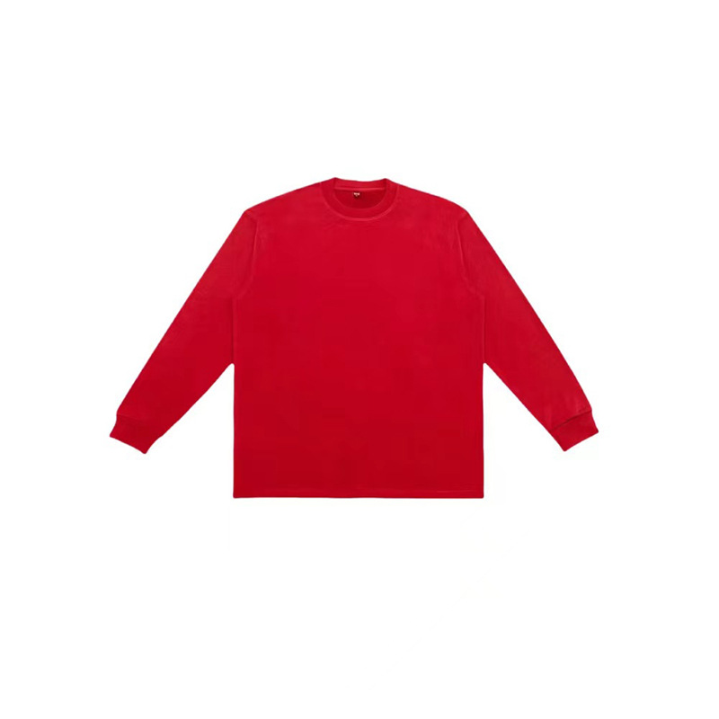 350 г тяжелый прилив маленький вырез сплошной цвет футболка с длинными рукавами мужские высокие воротники свободные oversize европейские и американские футболки