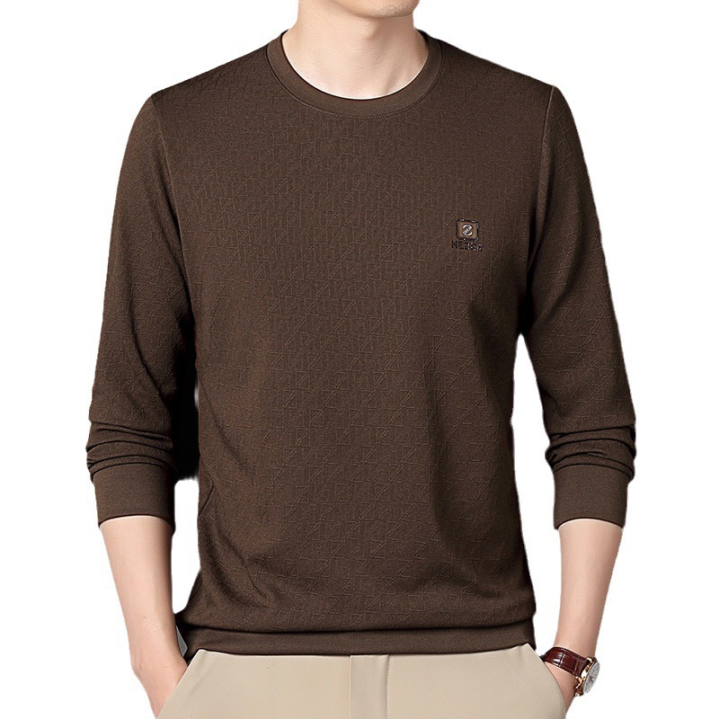 Мужская футболка с длинным рукавом на осень 2024, базовая модель, одежда для молодых и зрелых мужчин, модный свитшот с круглым вырезом, оптом