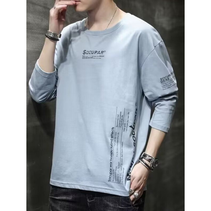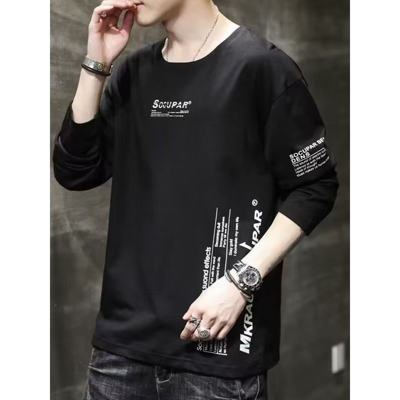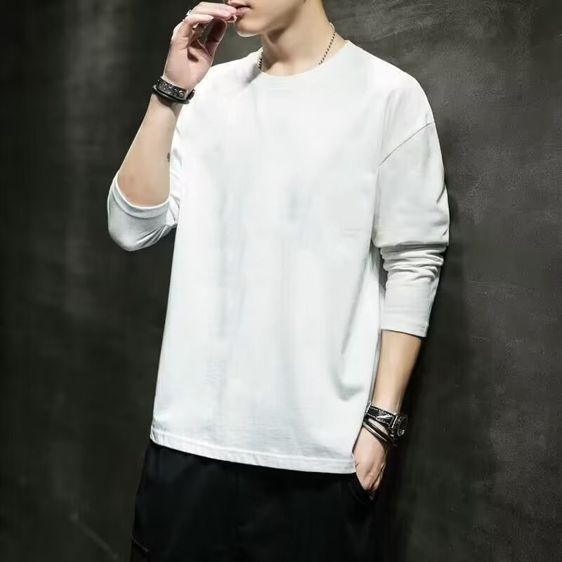 Главная страница > Осенне-зимняя мужская футболка с длинными рукавами в корейском стиле, осенняя новая толстовка с круглым вырезом, тонкая приталенная мужская рубашка с круглым вырезом