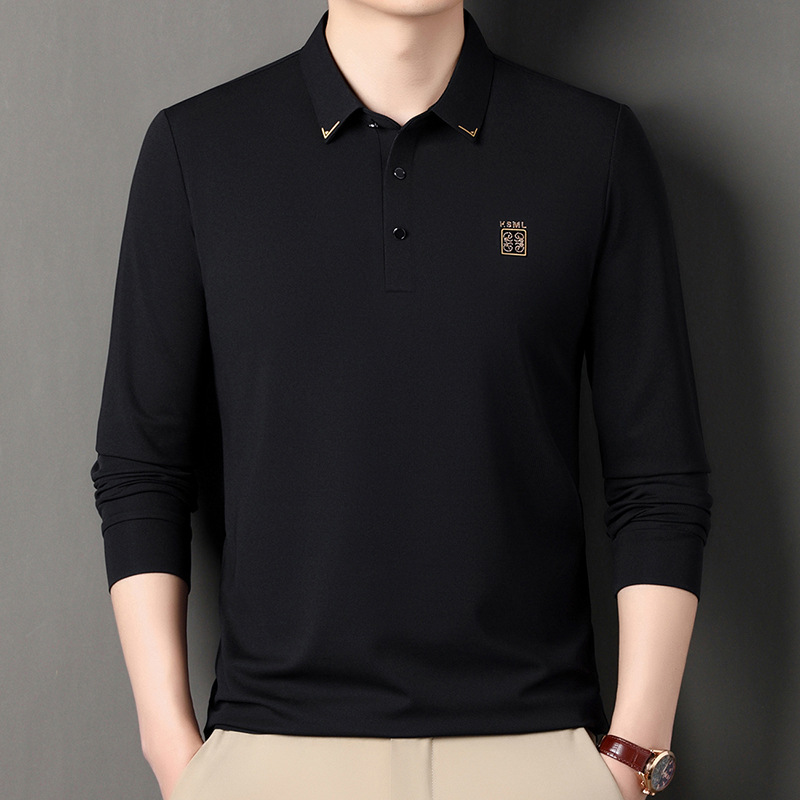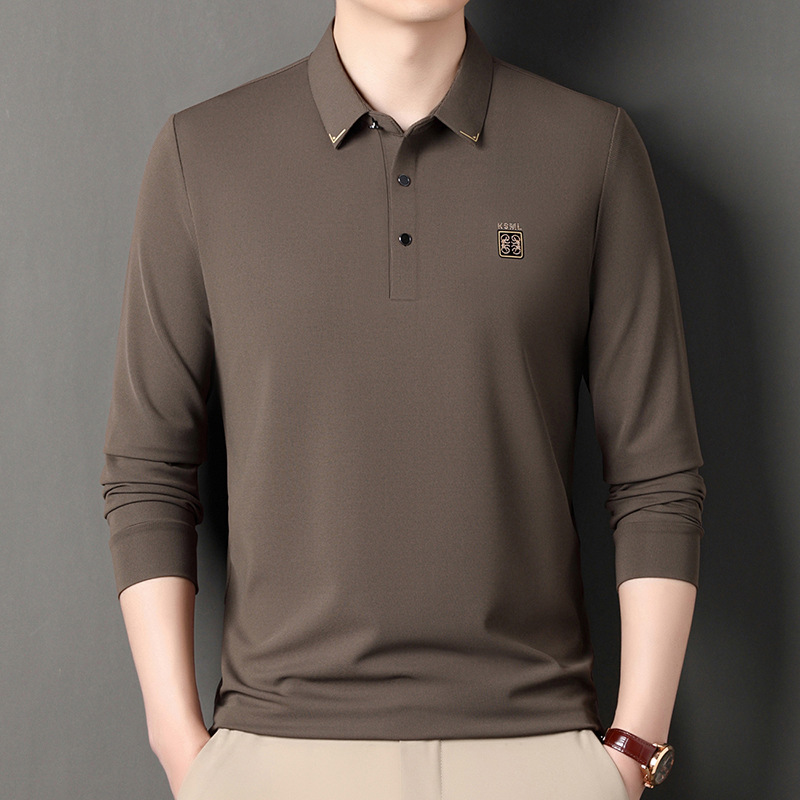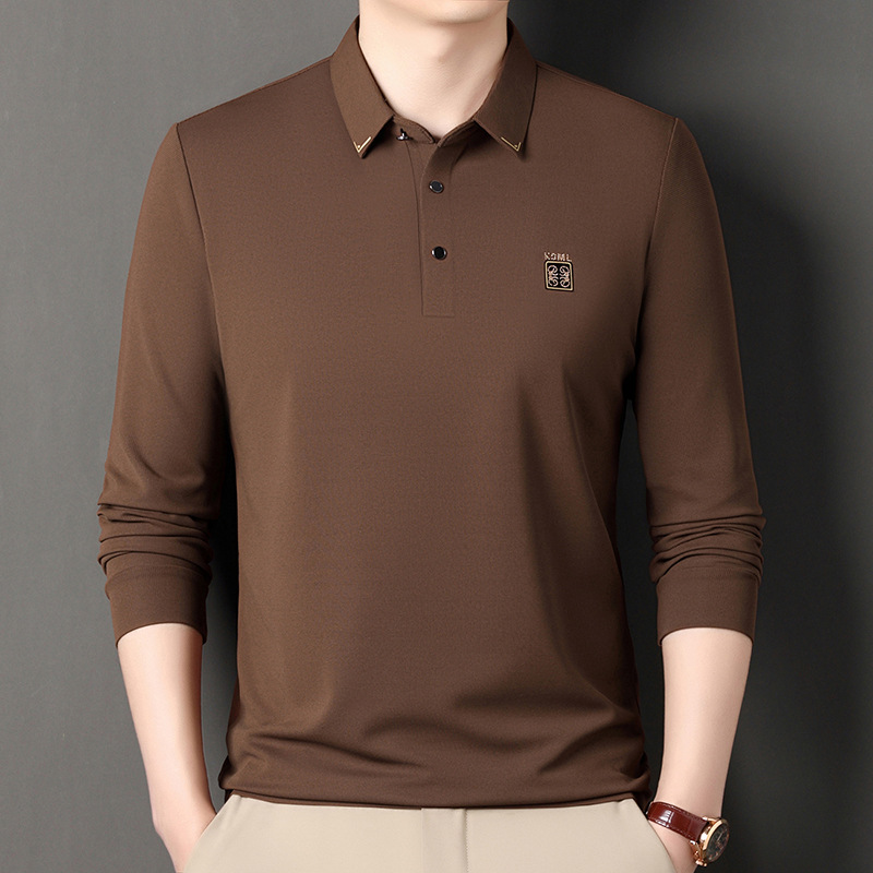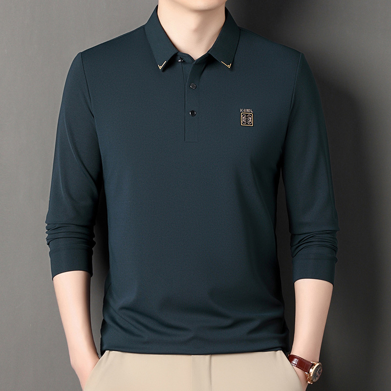 Главная страница > Шелковая футболка с длинными рукавами тутового дерева, мужская повседневная мужская Свободная дышащая футболка с лацканами для мужчин среднего возраста, доставка TikTok