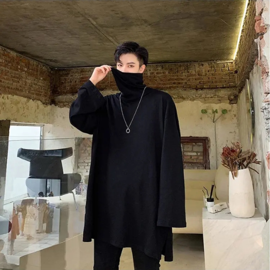Главная страница > Осенне-зимняя мужская Свободная футболка в Корейском стиле Diablo с высоким воротником и длинным рукавом, Базовая рубашка, модная мужская футболка в стиле хип-хоп для подростков