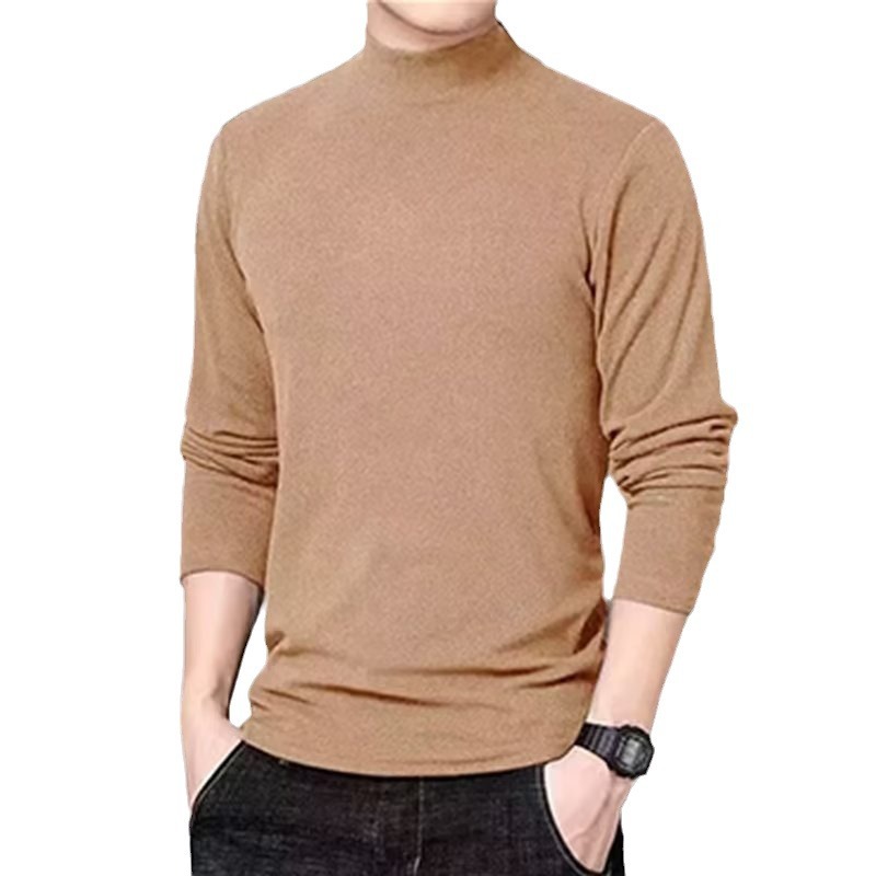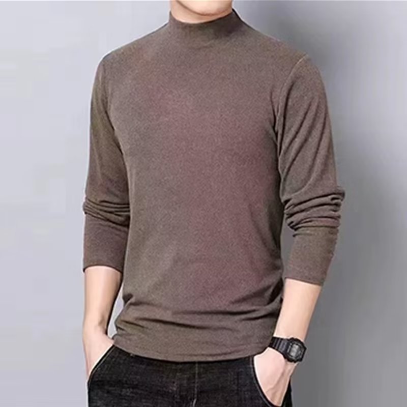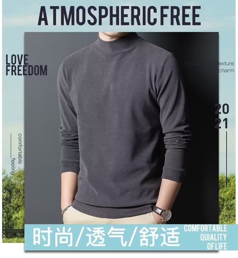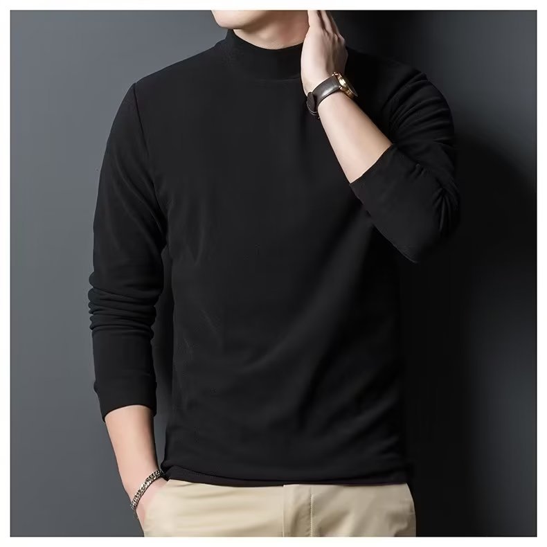 Главная страница > 2023 осенний и зимний полувысокий воротник нижняя рубашка мужская двухсторонняя Delong Han внутри теплый средний воротник с длинными рукавами рубашка сплошной цвет