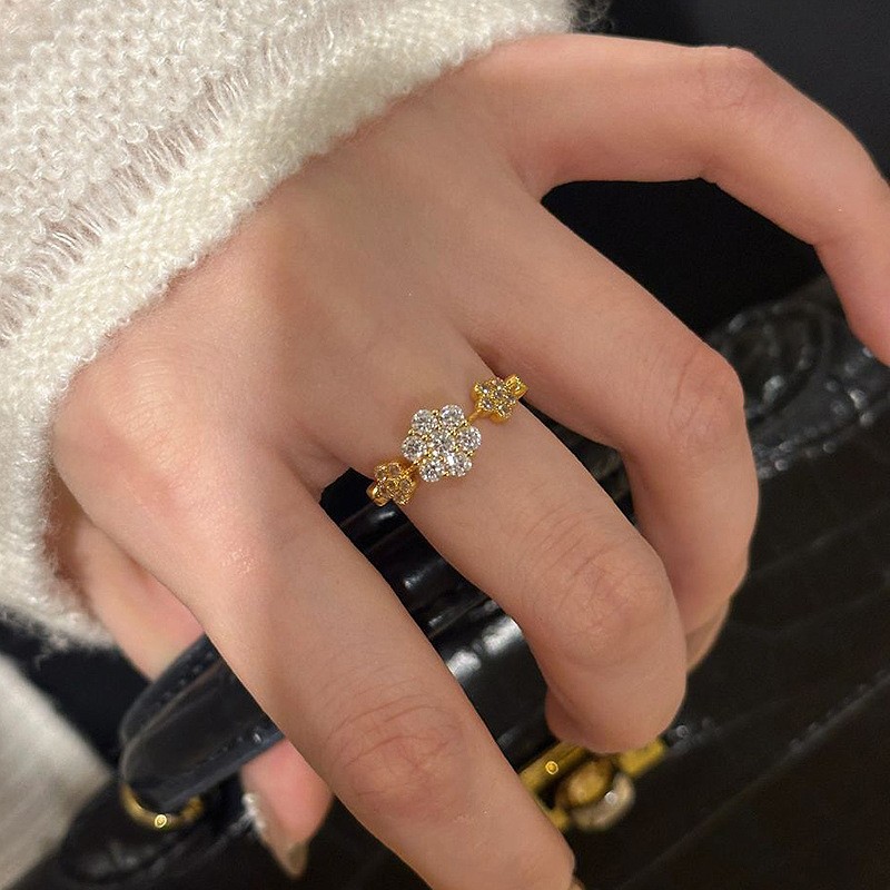Главная страница > Модное романтическое кольцо с пятью цветами и сверкающими бриллиантами для женщин на Xiaohongshu и Douyin, новое супер сверкающее кольцо с цветком и бриллиантами, доступное для дропшиппинга.
