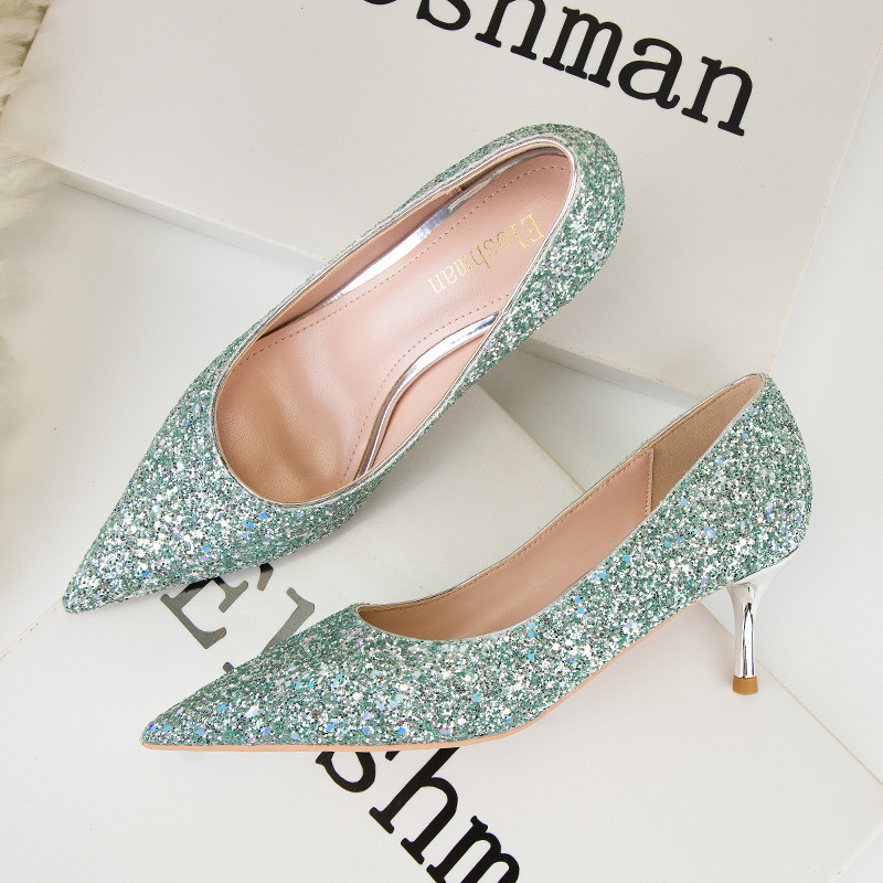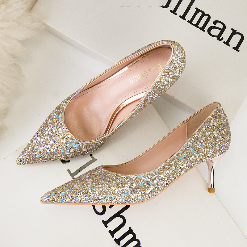 Главная страница > 859-7 Корейская Мода сексуальный тонкий шпилька каблук высокие каблуки неглубокий рот указал Блеск Блестки банкетные туфли свадебные туфли
