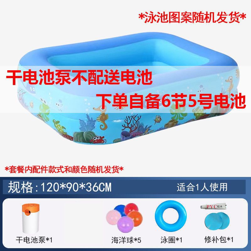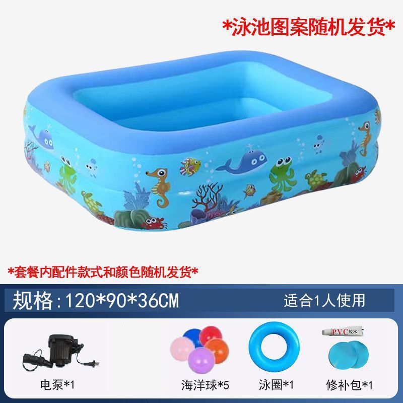 Бассейн 150 см - трехслойное утолщение с принтом океана - аккумуляторный насос [зарядка вспышки для игр в воде на открытом воздухе]