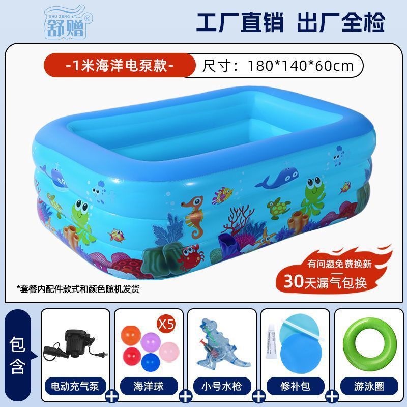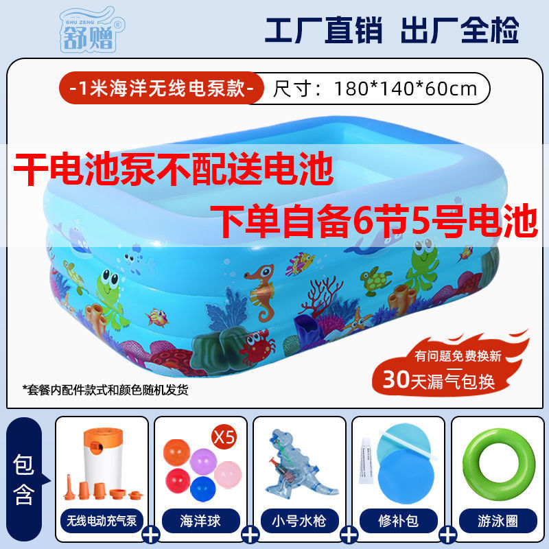 Бассейн 180 см - трехслойный утолщенный принт с океаном - аккумуляторный насос [зарядка вспышки для игр в воде на открытом воздухе]