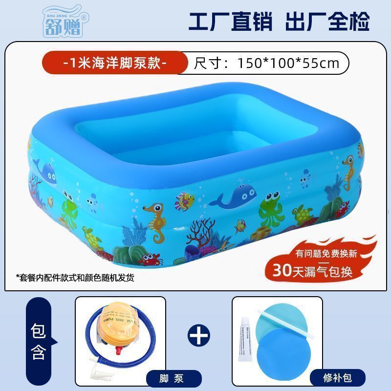 Бассейн 150 см - трехслойный утолщенный принт с океаном - ножной насос [медленно надувается после накачивания]