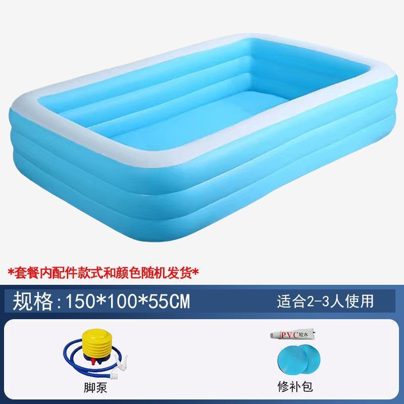 Бассейн 150 см - синий и белый, простое трехслойное утолщение - ножной насос [утомительно накачивать и медленно надувать]