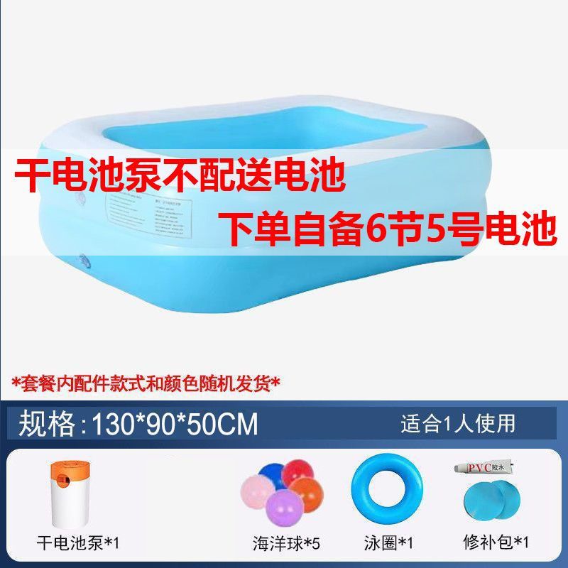 Бассейн 130 см - простое двухслойное утолщение синего и белого цвета - аккумуляторный насос [зарядка вспышки для игр с водой на открытом воздухе]