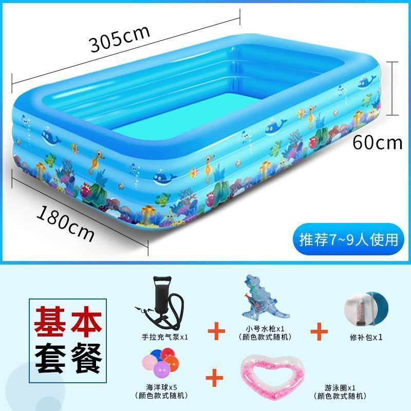 Бассейн 300 см - трехслойный утолщенный принт океана - ручной насос для улицы [насосный дух для улицы]