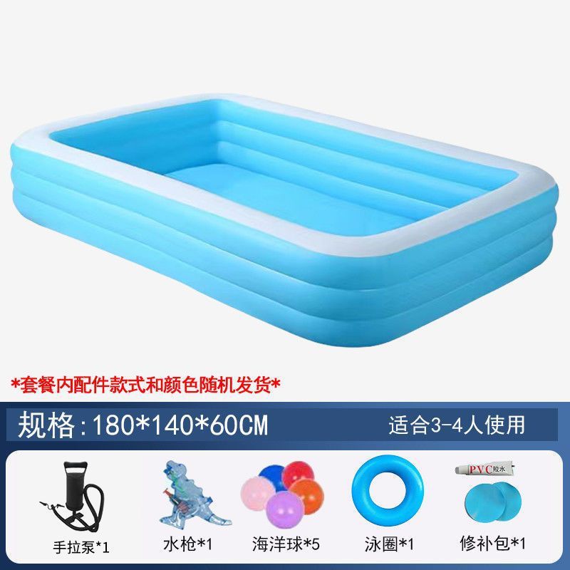 Бассейн 180 см - простое трехслойное утолщение синего и белого цвета - ручной насос для улицы [насосный дух для улицы]