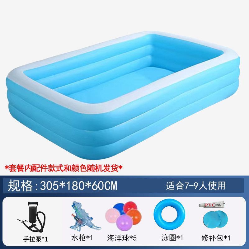 Бассейн 300 см - простое трехслойное утолщение синего и белого цвета - ручной насос для улицы [насосный дух для улицы]