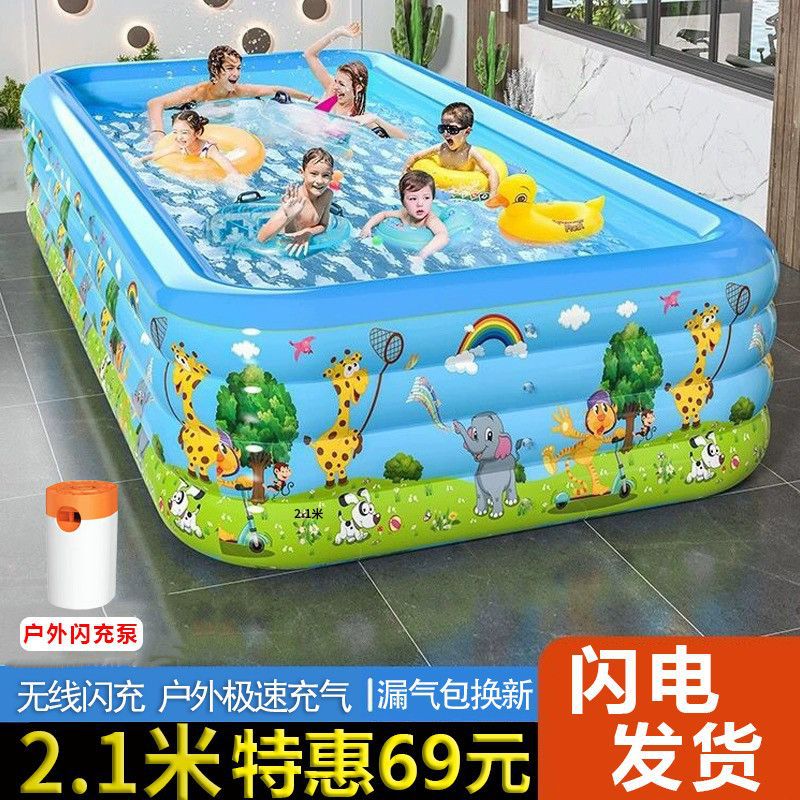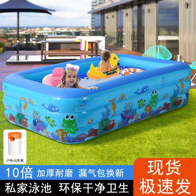 Бассейн 210 см - трехслойный утолщенный принт с океаном - аккумуляторный насос [зарядка вспышки для игр с водой на открытом воздухе]