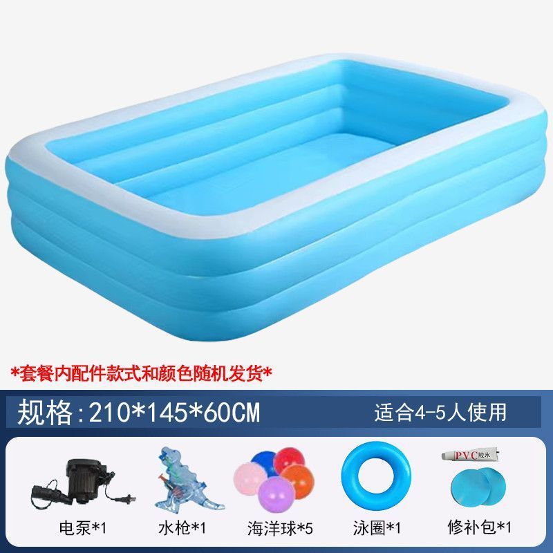 Бассейн 210 см - простое сине-белое трехслойное утолщение - бытовая вилка 220 В [быстрая надувание