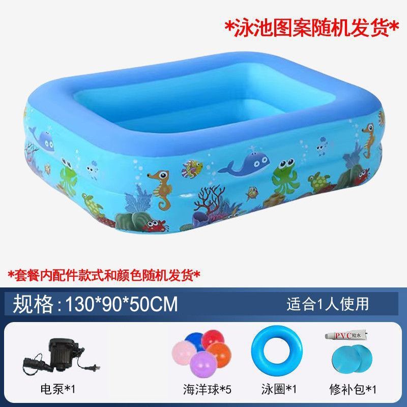 Бассейн 130 см - двухслойное утолщение с принтом океана - бытовая розетка 220 В [быстрая надувание