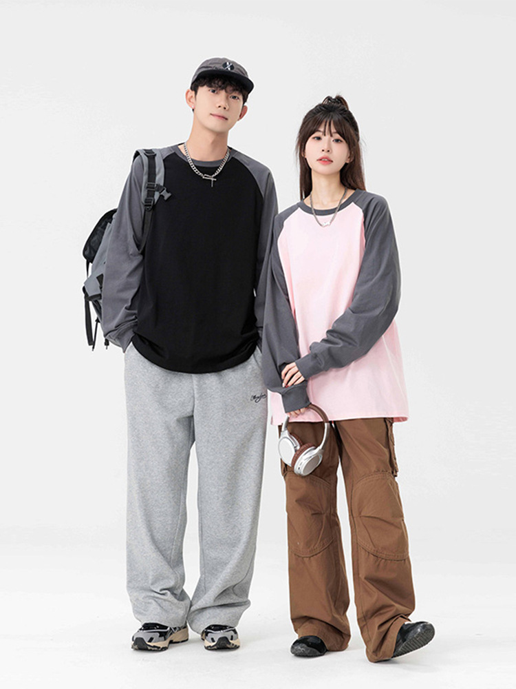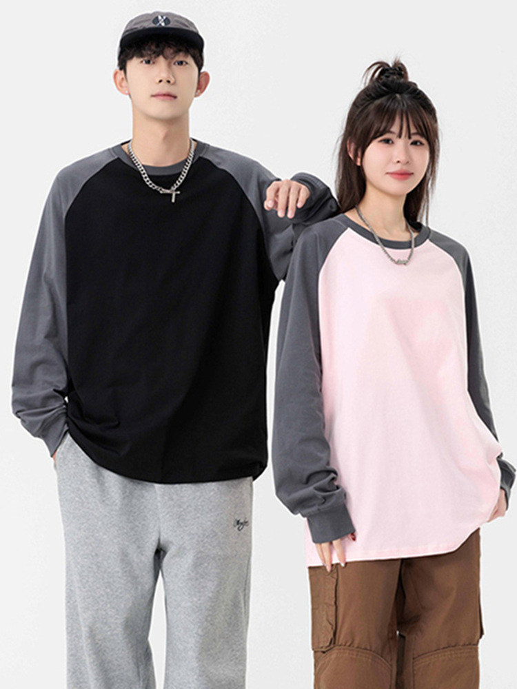 Главная страница > Футболки с длинными рукавами для мужчин и женщин, осенние толстовки с круглым вырезом, модные брендовые свободные повседневные топы и рубашки чистого цвета для пар.