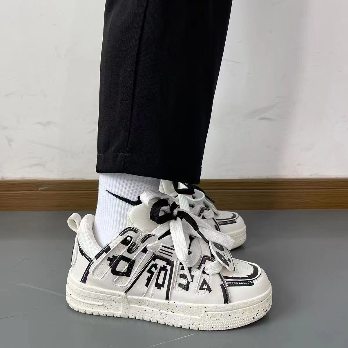 Главная страница > Новая национальная Мода [черно-белая панда], мужская и женская модель на платформе с граффити, Повседневная Белая обувь в стиле Харадзюку, Настольная обувь