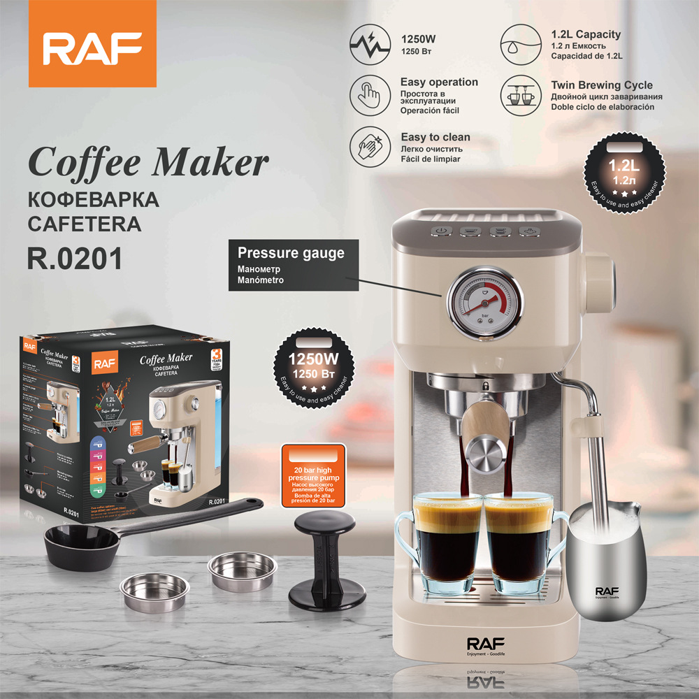 Европейская полуавтоматическая кофемашина RAF, концентрированный двойной манометр, горячая и холодная экстракция, молочная пена, паровая универсальная кофемашина