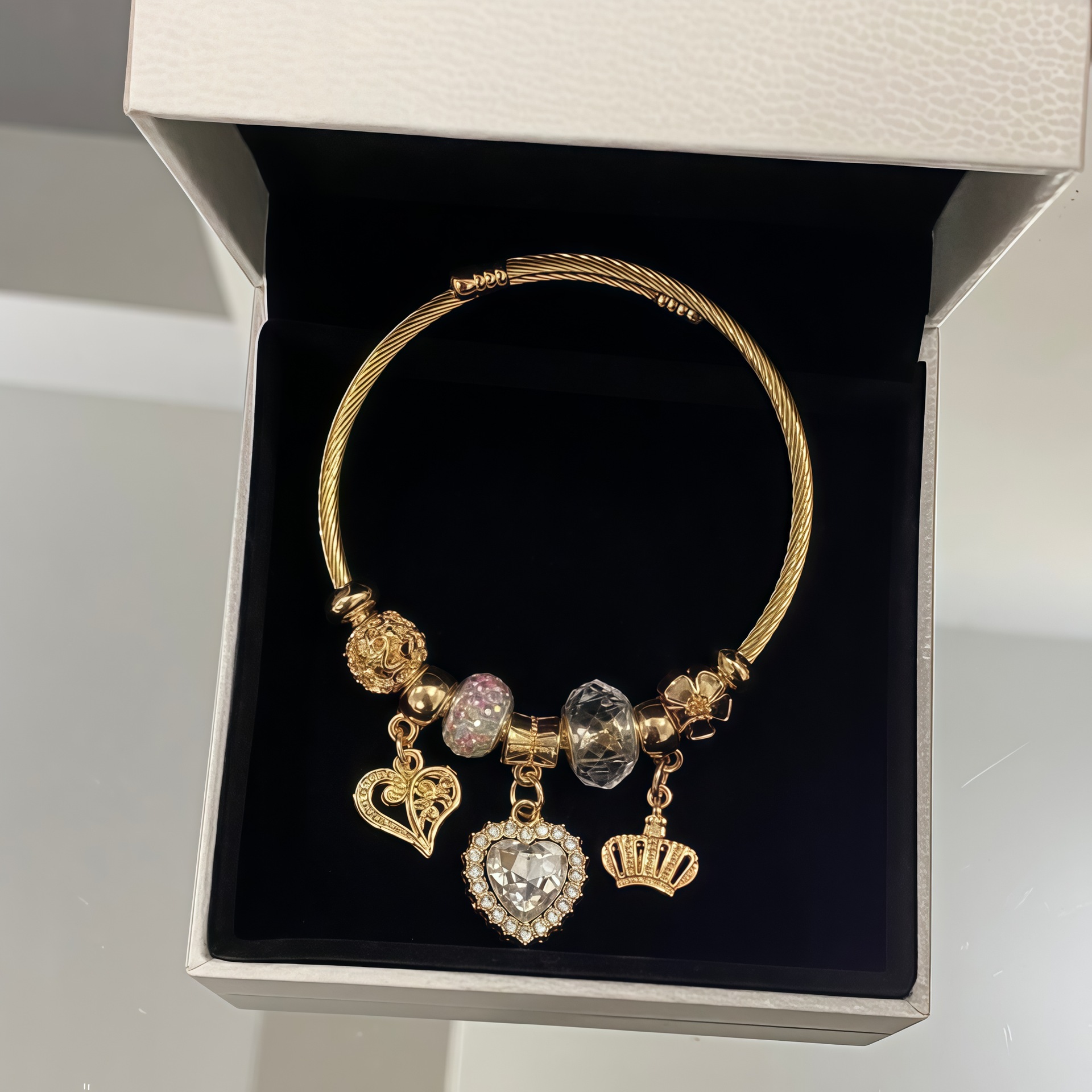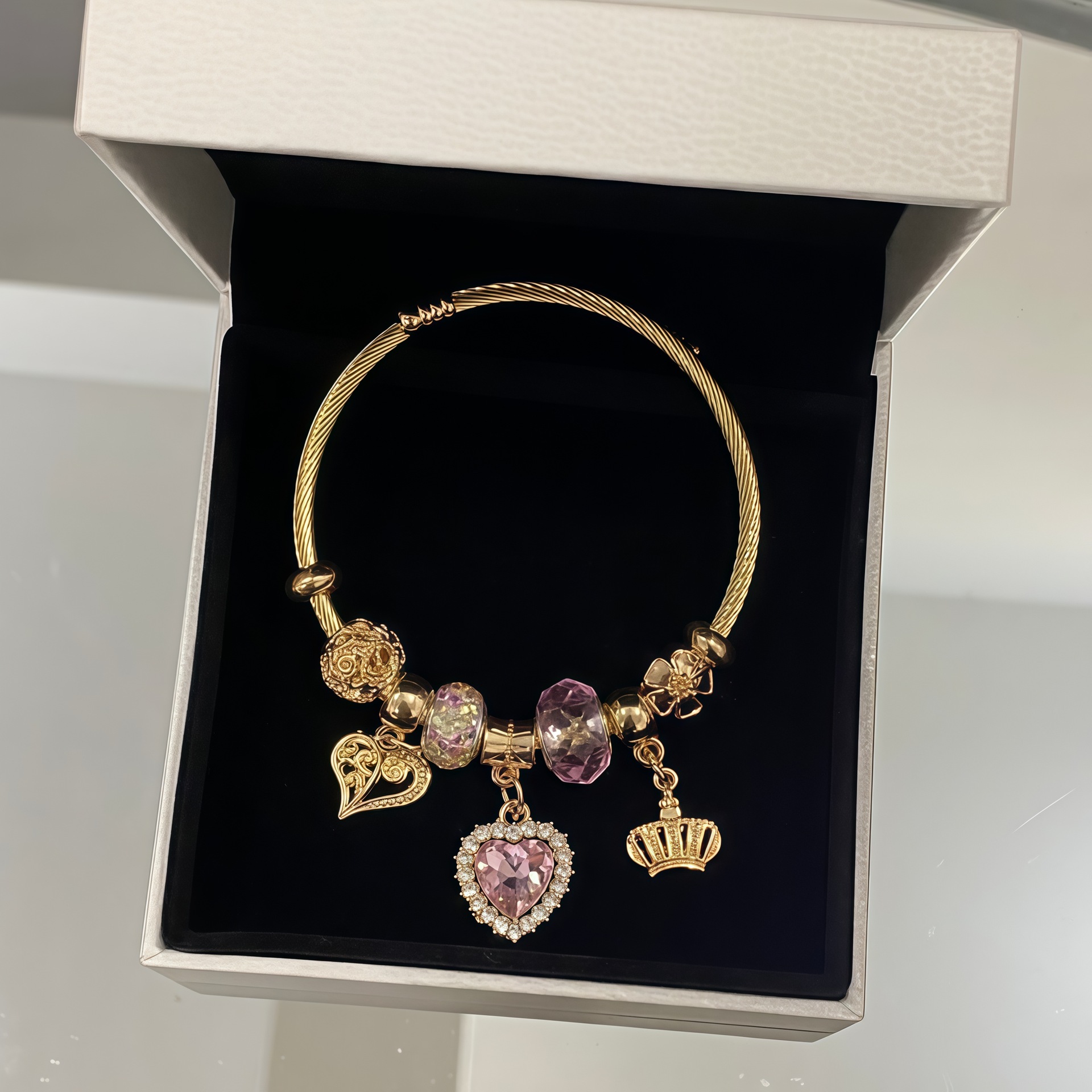 Браслет из нержавеющей стали Panjia Dora с кристаллами, подвеской в виде сердца, регулируемый, в одном стиле для лучших подруг