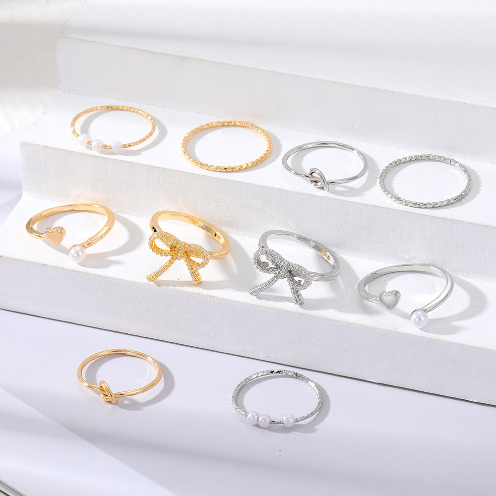 Главная страница > Набор из 5 колец с узелком-сердцем, бантом и жемчугом, простой и роскошный, экологичный, сохраняющий цвет, для экспорта