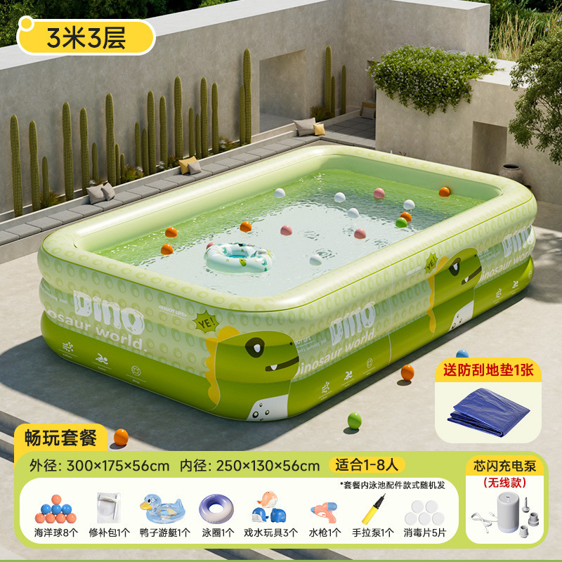 3m Трехслойный бассейн Longzai Green + новая проводная зарядка с вспышкой + базовый пакет