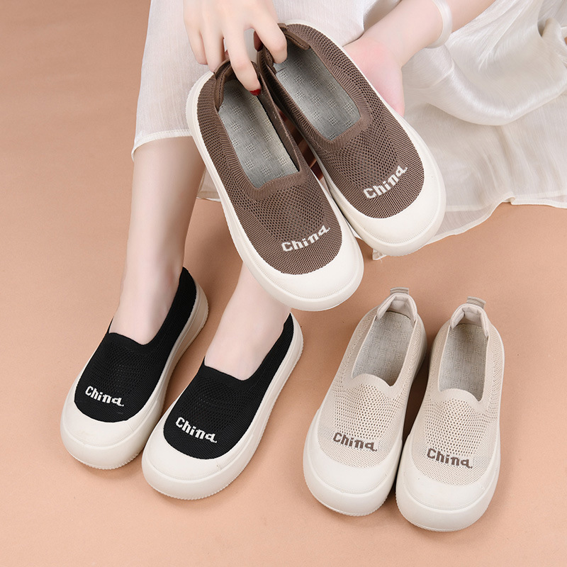 Главная страница > Новые женские летние дышащие туфли из сетчатой вязки без запаха, модные универсальные лоферы без шнуровки.