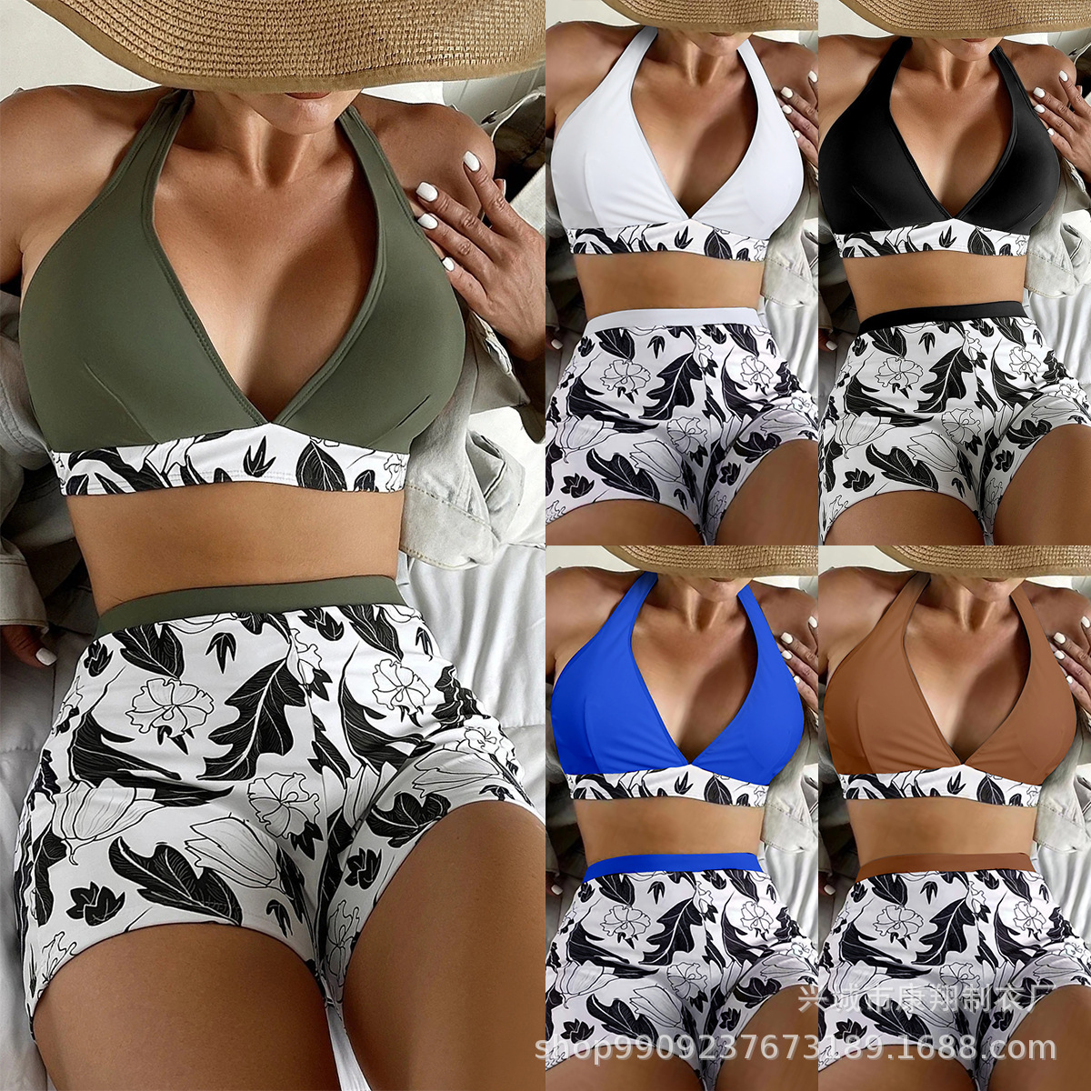 2023 Купальник для европейской и американской внешней торговли Женский Боксер с высокой талией и разрезом на шнуровке, однотонный купальник с принтом и вышивкой в Интернете, знаменитый купальник AliExpress