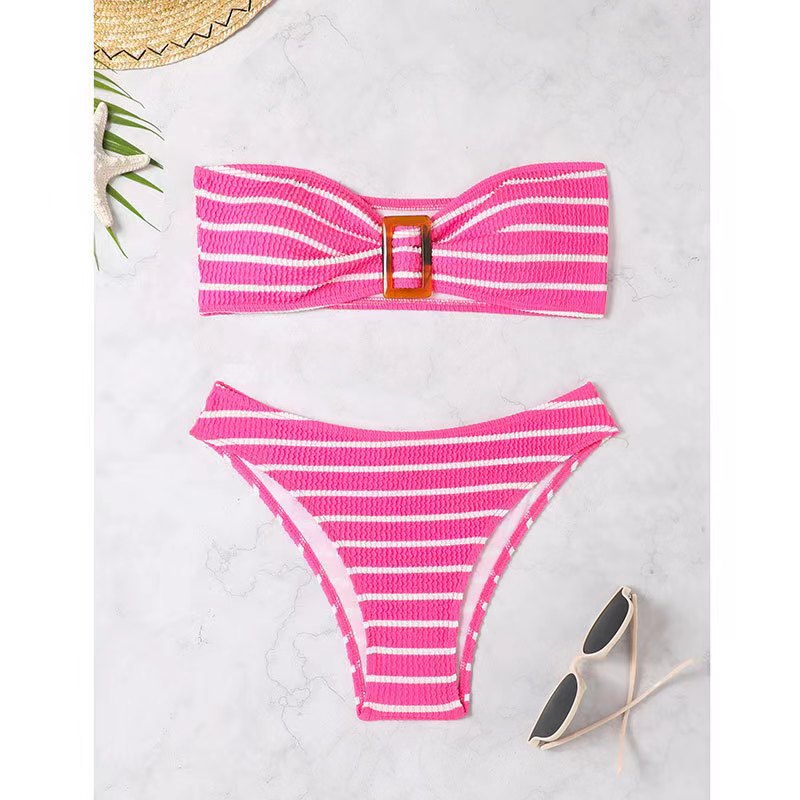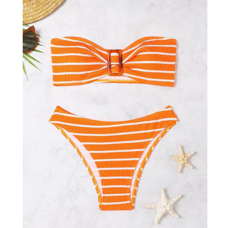 Европейская и американская внешняя торговля купальник-бикини женский 2023 сексуальный Модный черный раздельный купальник без бретелек с принтом в горизонтальную полоску