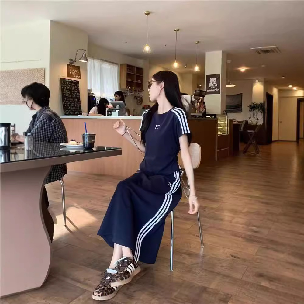 Главная страница > Трансграничный повседневный модный набор женская футболка с короткими рукавами с тремя полосами