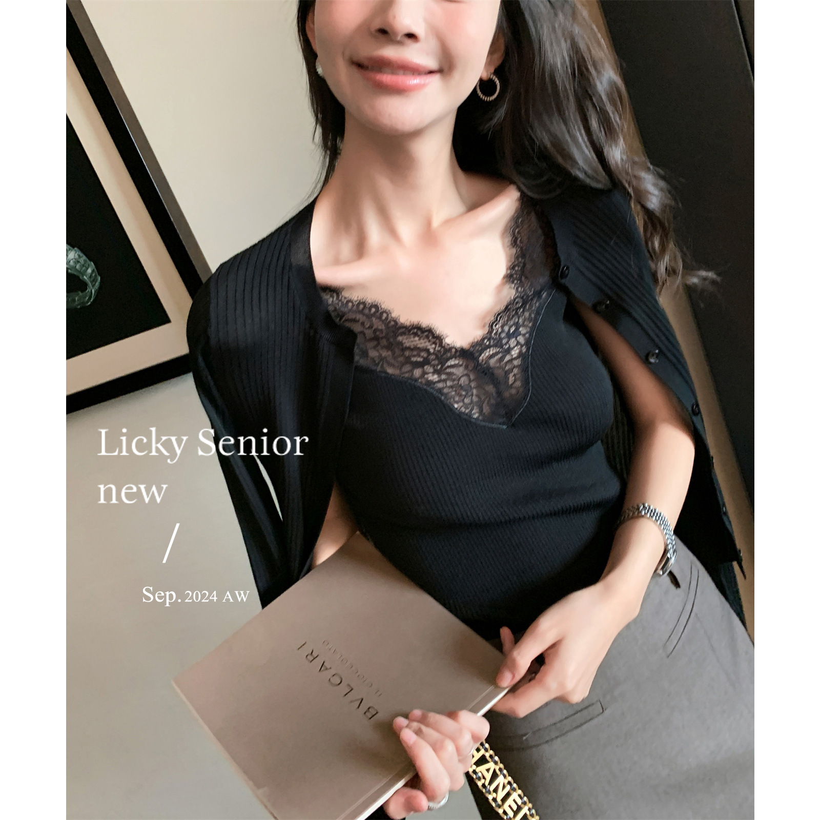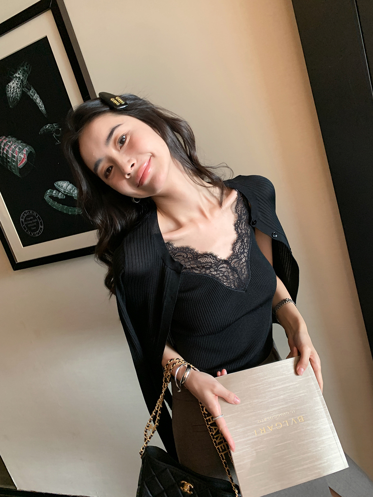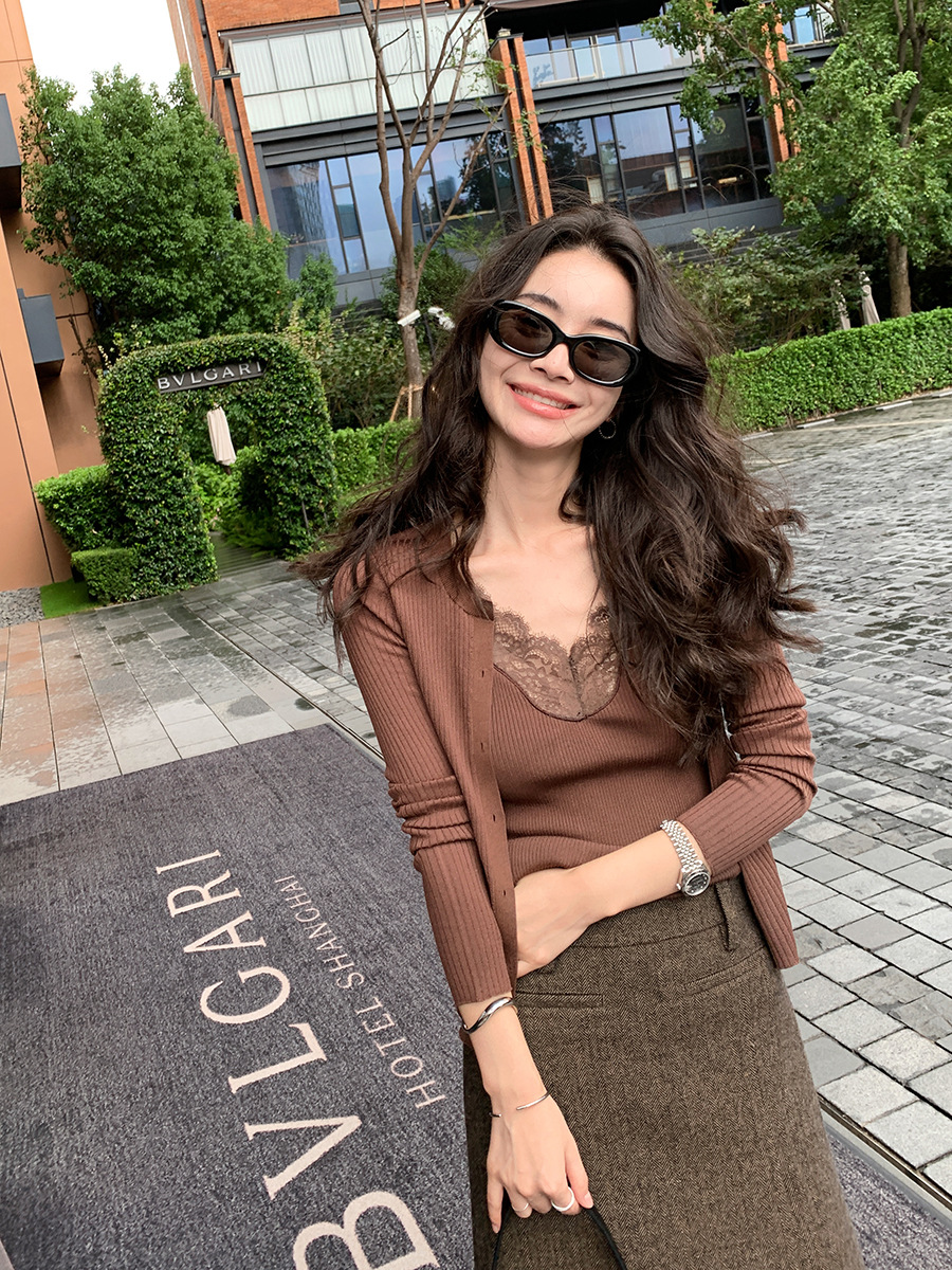 Комплект женский в гонконгском стиле: новый осенний мягкий шерстяной костюм из кружева, вязаный кардиган и топ-комбинация, 2025 год