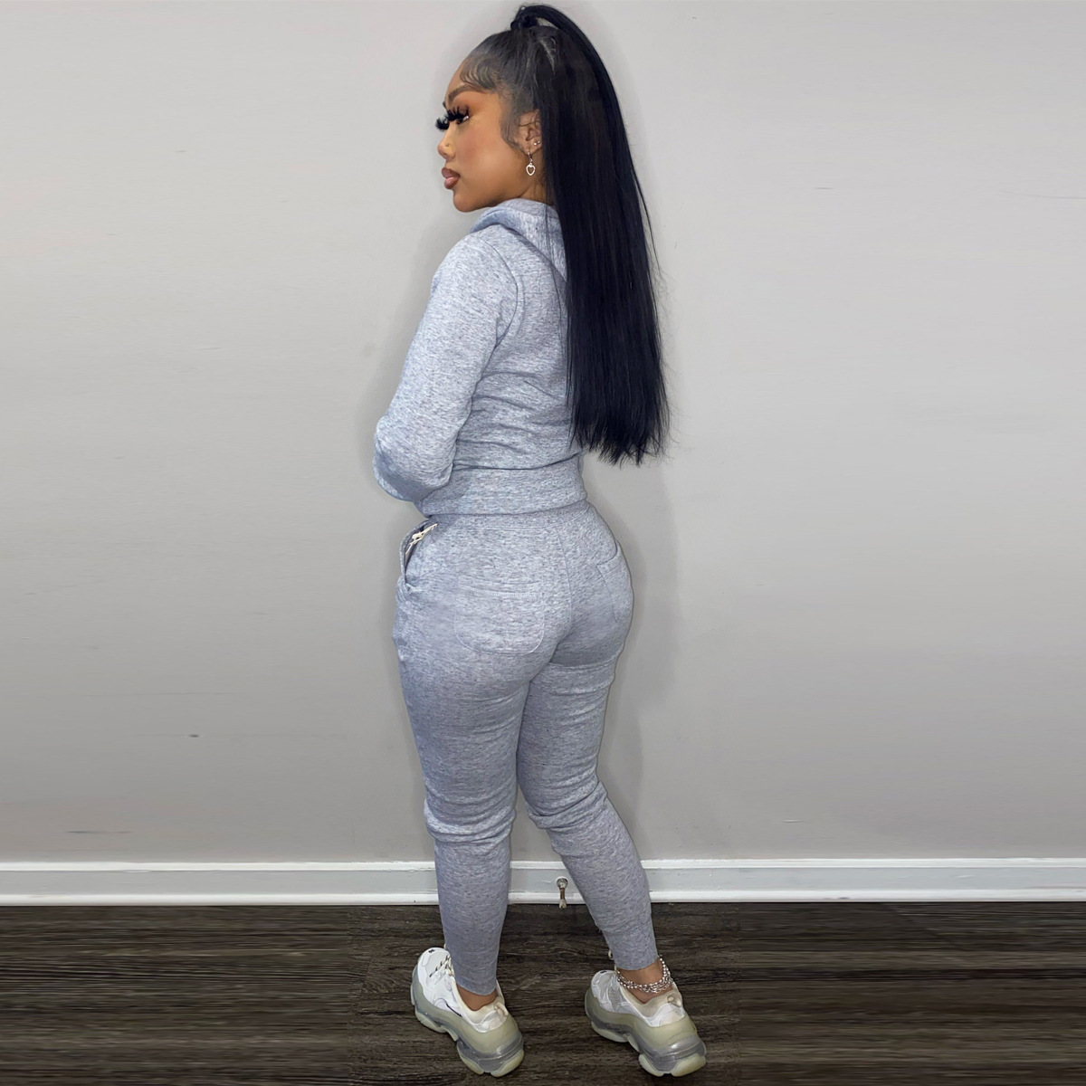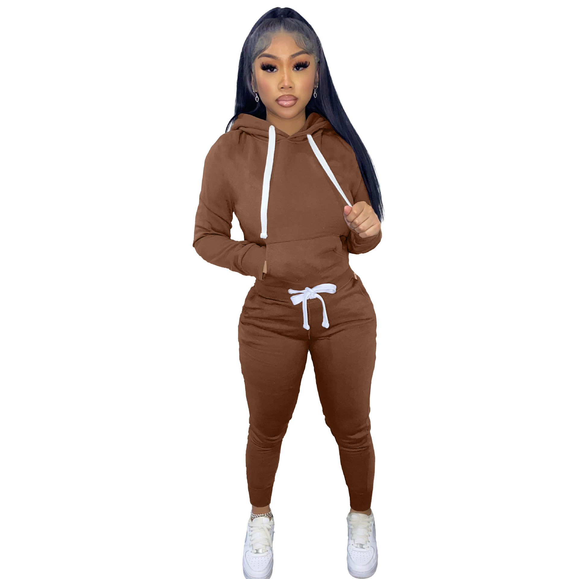 Главная страница > TK6258 Европейская и американская модная женская одежда, осенне-зимний комплект из двух предметов на флисовой подкладке, однотонный шнурок с капюшоном (включая карманы)