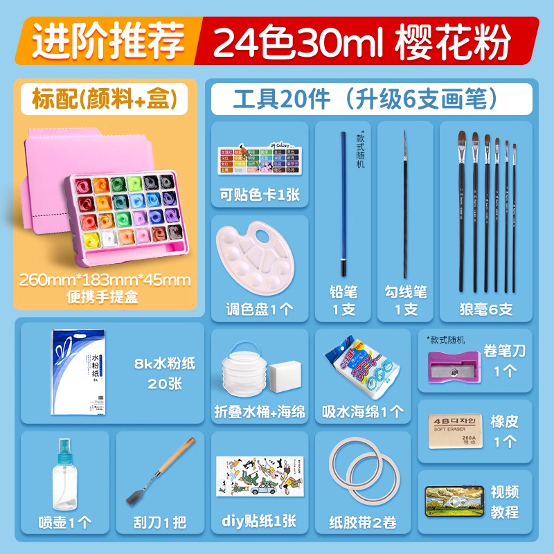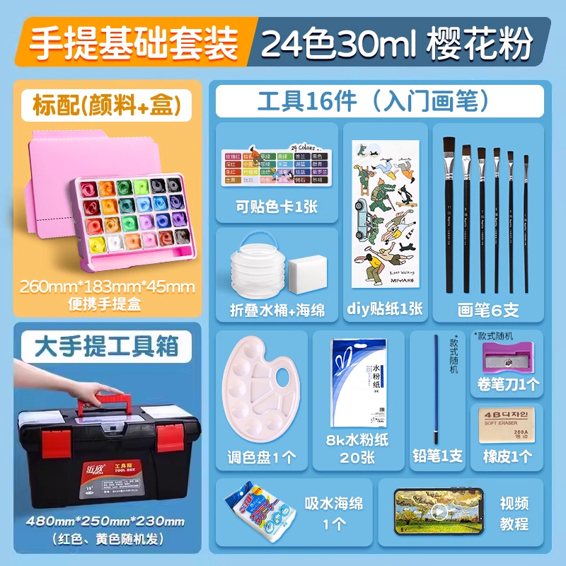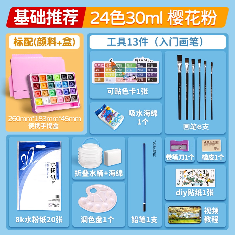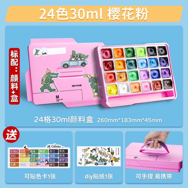 24 цвета, 30 мл порошка вишневого цвета (краска + чемодан), бесплатные наклейки своими руками
