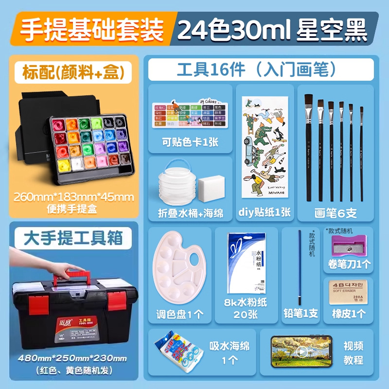24 цвета, 30 мл, звездное небо, черный (краска + чемодан), бесплатные наклейки своими руками