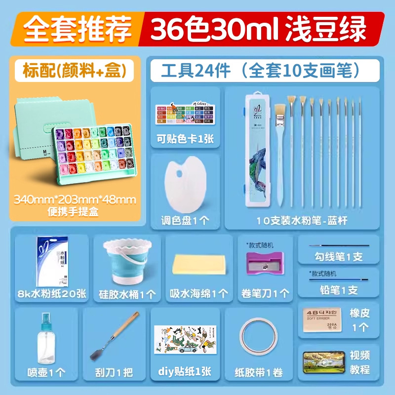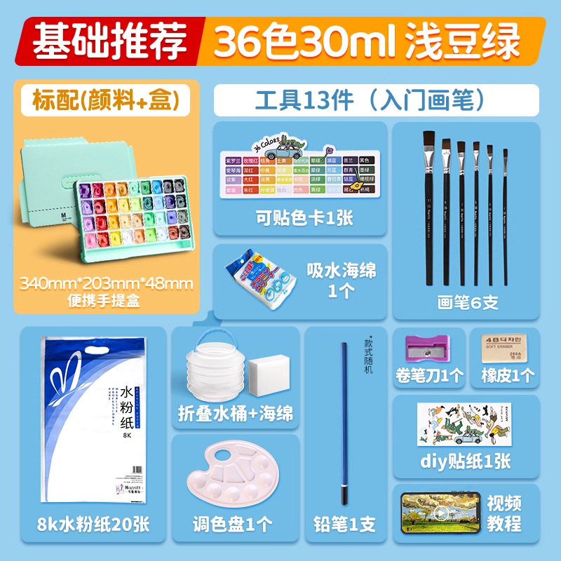 36 цветов, 30 мл, светло-зеленый боб [базовый набор из 13 предметов]