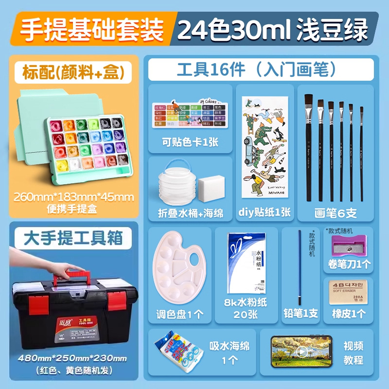 24 цвета, 30 мл, светло-зеленый (краска + чемодан), бесплатные наклейки своими руками