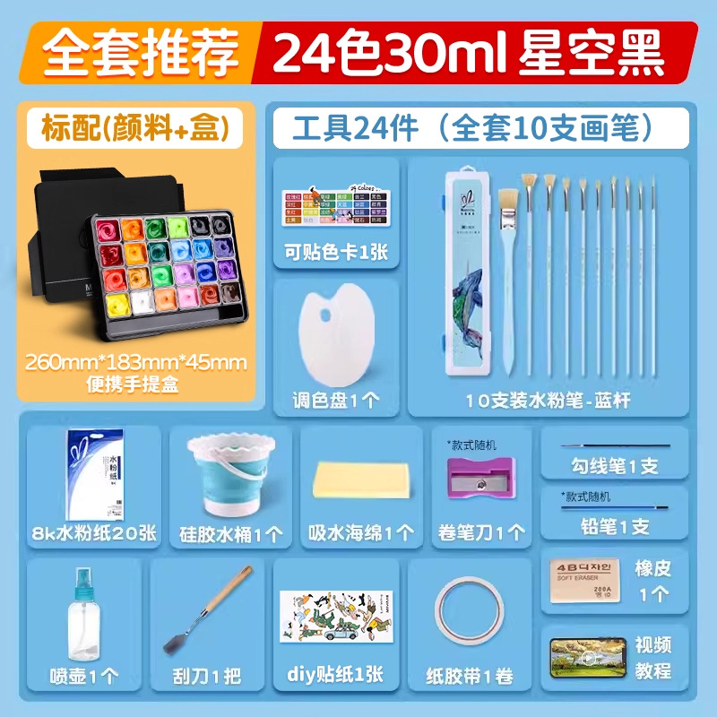 24 цвета, 30 мл, звездное небо, черный [полный набор из 22 инструментов]